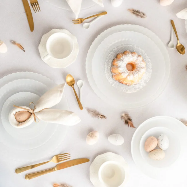 Wprowadź na swój wielkanocny stół nutę ciepła i światła dzięki kolekcji BEIGE. Jej miękki odcień pięknie współgra z jasnymi obrusami, ceramiką i świeżymi kwiatami, tworząc harmonijną, wiosenną aranżację.