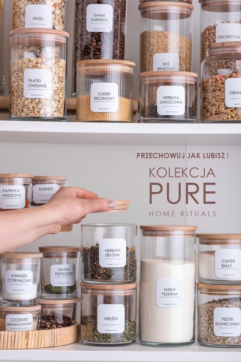 Przechowuj tak, jak lubisz – estetycznie, wygodnie i dokładnie tak, jak potrzebujesz. Z kolekcją PURE uporządkujesz swoją spiżarnię i nadasz jej spójny, elegancki wygląd.