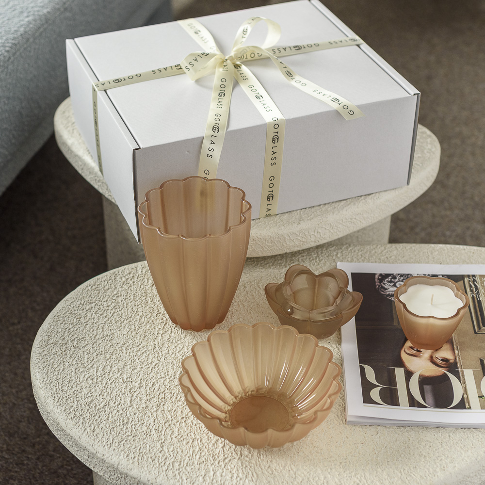 Dekoracyjny zestaw prezentowy beżowy-wazon misa świecznik świeca