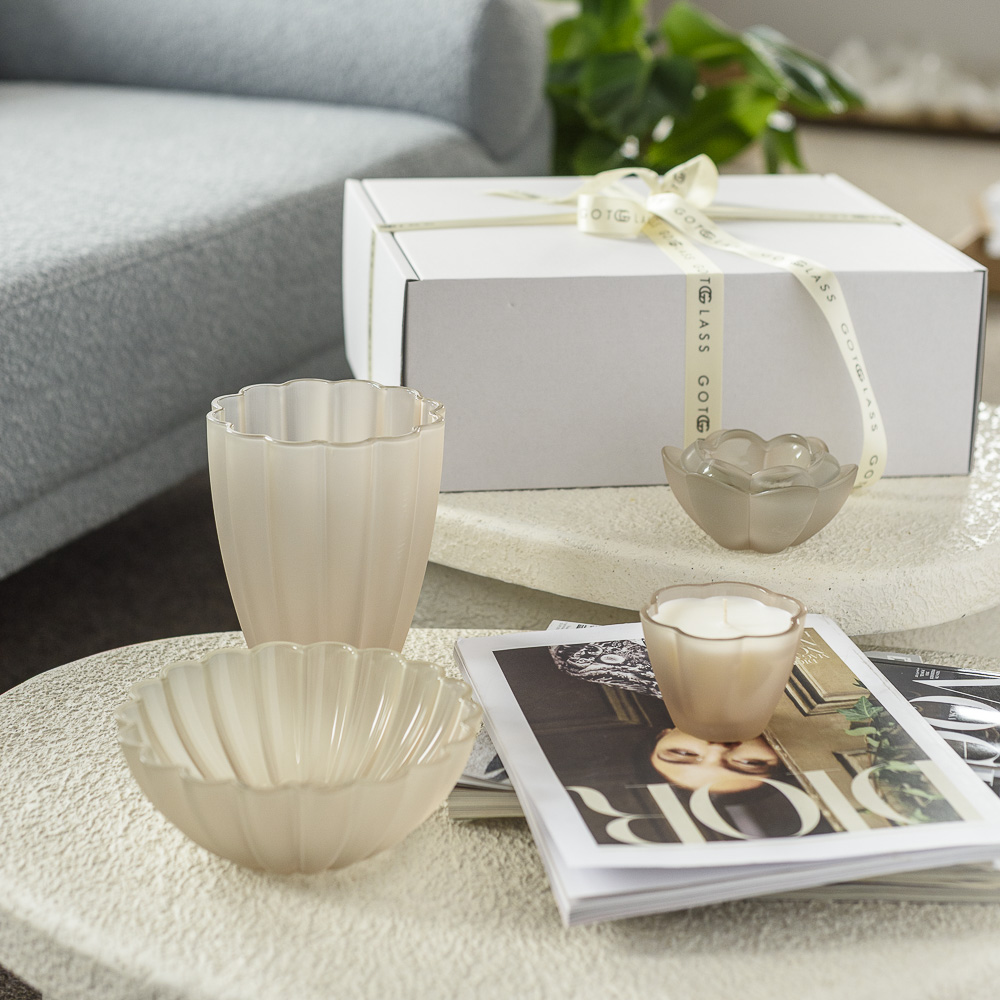 Dekoracyjny zestaw prezentowy perłowy-wazon misa świecznik świeca