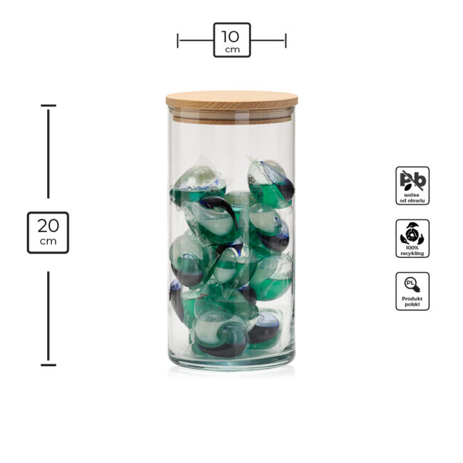 Pojemnik szklany do przechowywania PURE HOME z pokrywką drewnianą 20 cm