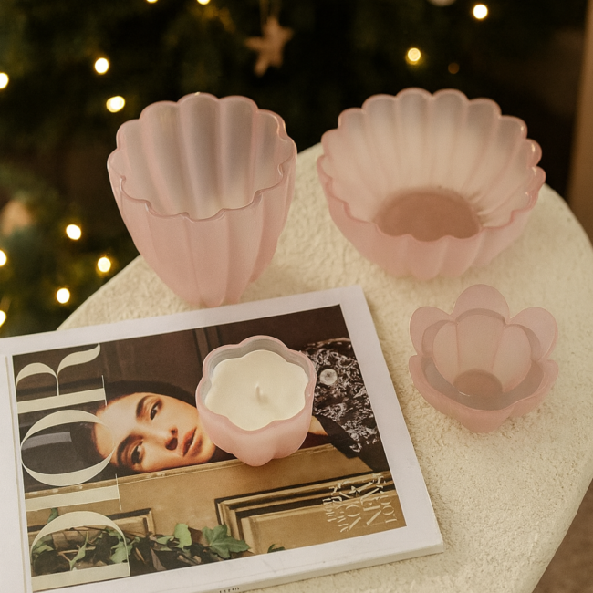 Satynowe wykończenie w delikatnym odcieniu różu pięknie rozprasza światło i sprawia, że każdy element prezentownika nabiera miękkiego, eleganckiego charakteru. Wazon w designerskiej formie może pełnić funkcję samodzielnej dekoracji – postawiony na konsoli czy stoliku kawowym stanie się przyciągającym wzrok detalem. Misa doda stołowi wyrafinowania, niezależnie od tego, czy wypełnisz ją owocami, czy pozostanie pustą, czysto dekoracyjną formą. Świecznik w kształcie kwiatu i szklana świeca zapachowa dopełniają całości, tworząc przytulny, nastrojowy klimat w każdym wnętrzu.