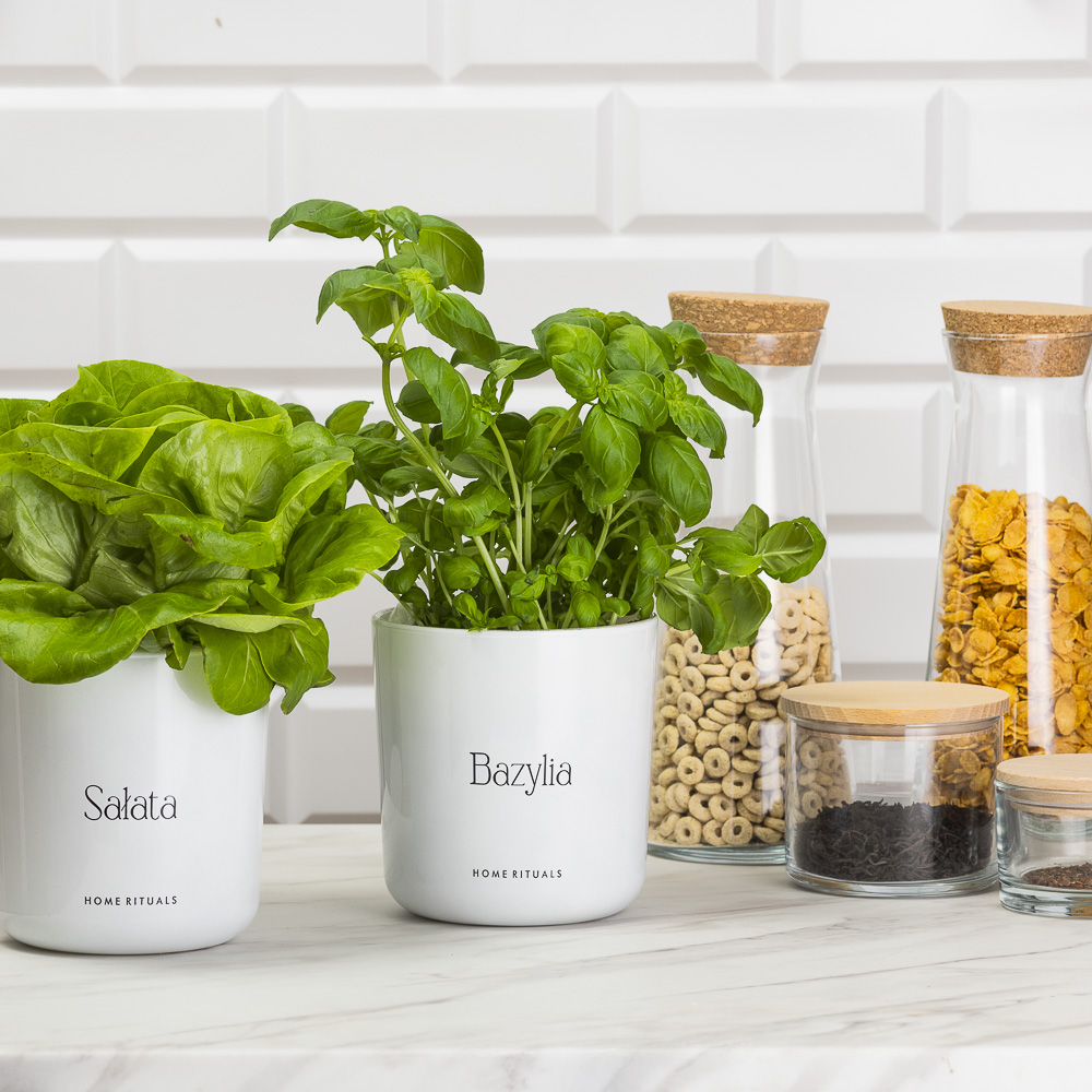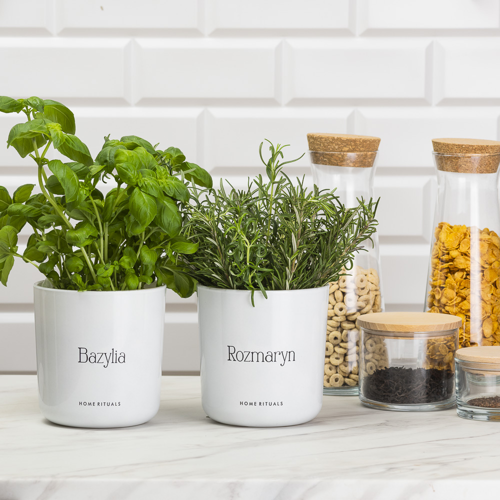 Stylowy napis wykonany metodą sitodruku w kolorze czarnym nie tylko dodaje wyjątkowej klasy, ale również ułatwia organizację domowego zielnika, pomagając w estetycznej segregacji ziół.
