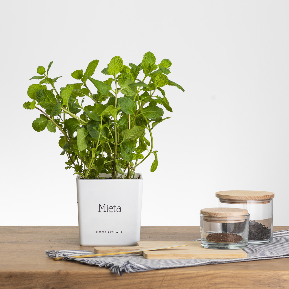 Doniczka na zioła w białym połysku, z subtelnym czarnym napisem „Mięta”, jest doskonałym połączeniem elegancji i funkcjonalności, które świetnie wpisuje się w nowoczesne i minimalistyczne wnętrza. Biała błyszcząca powierzchnia doniczki emanuje prostotą, a jej delikatna tekstura nadaje jej przytulny, ale zarazem elegancki charakter. Czarny napis, subtelnie wyeksponowany na frontowej stronie, wprowadza do całości odrobinę luksusu i sprawia, że całość nabiera wyrafinowanego wyrazu.