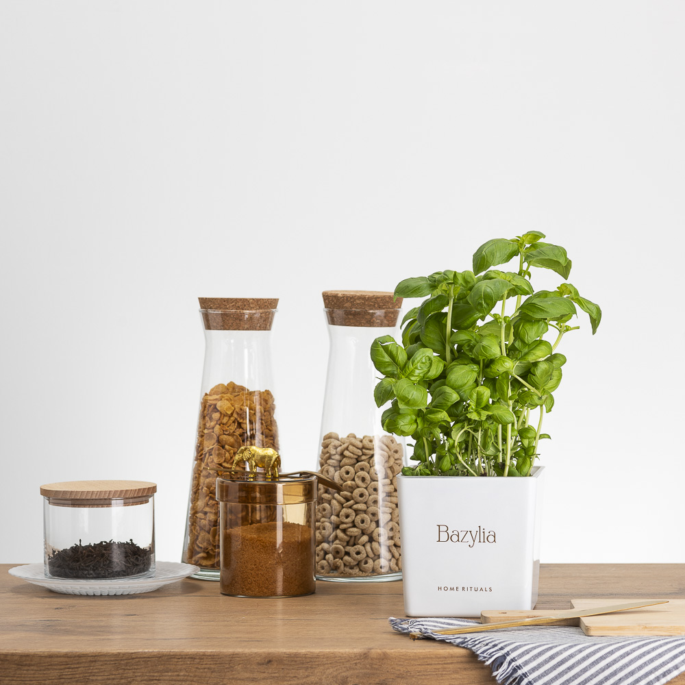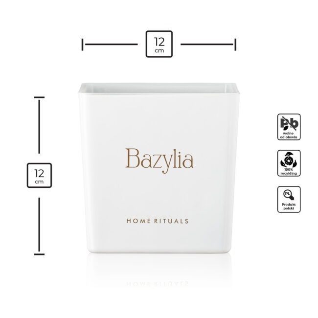 Doniczka na zioła w białym połysku, z subtelnym złotym napisem „Bazylia”, jest doskonałym połączeniem elegancji i funkcjonalności, które świetnie wpisuje się w nowoczesne i minimalistyczne wnętrza. Biała błyszcząca powierzchnia doniczki emanuje prostotą, a jej delikatna tekstura nadaje jej przytulny, ale zarazem elegancki charakter. Złoty napis, subtelnie wyeksponowany na frontowej stronie, wprowadza do całości odrobinę luksusu i sprawia, że całość nabiera wyrafinowanego wyrazu.