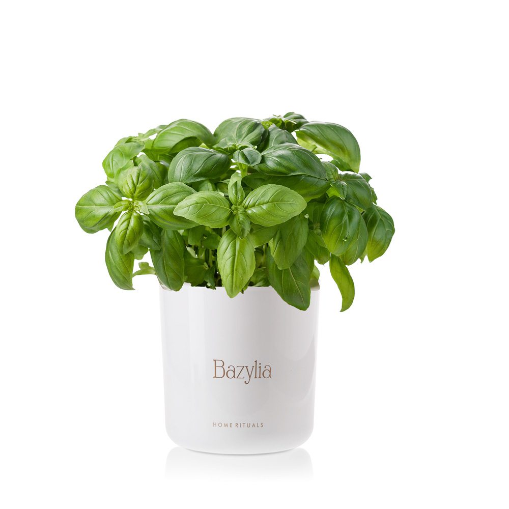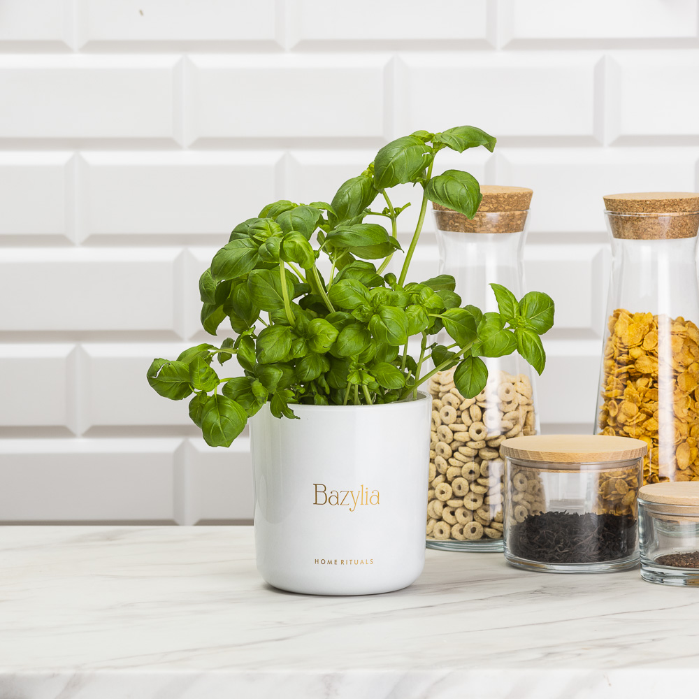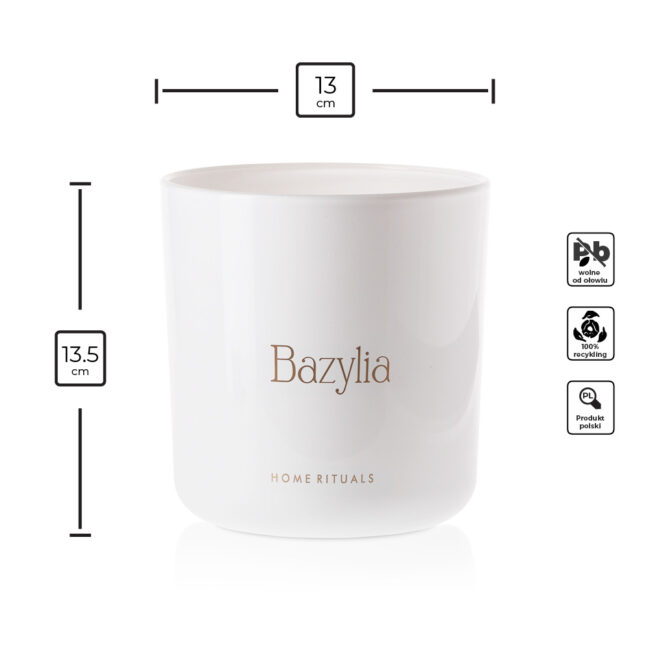 Doniczka osłonka biała ze złotym napisem Bazylia 13cm