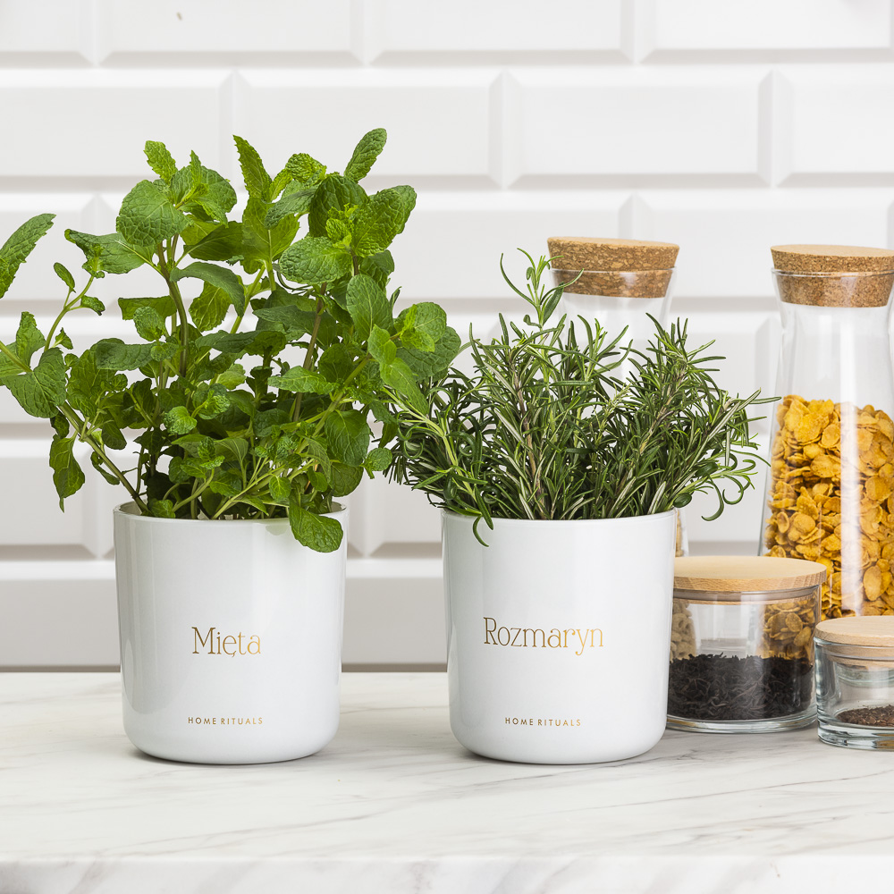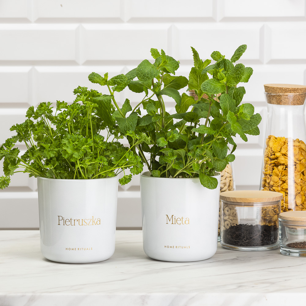 Stylowy napis wykonany metodą sitodruku w kolorze złotym nie tylko dodaje wyjątkowej klasy, ale również ułatwia organizację domowego zielnika, pomagając w estetycznej segregacji ziół.