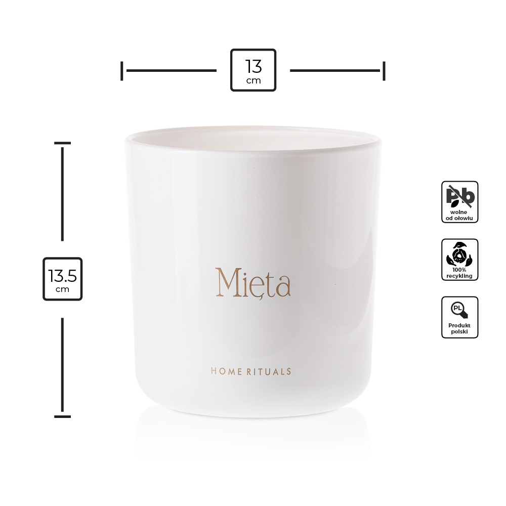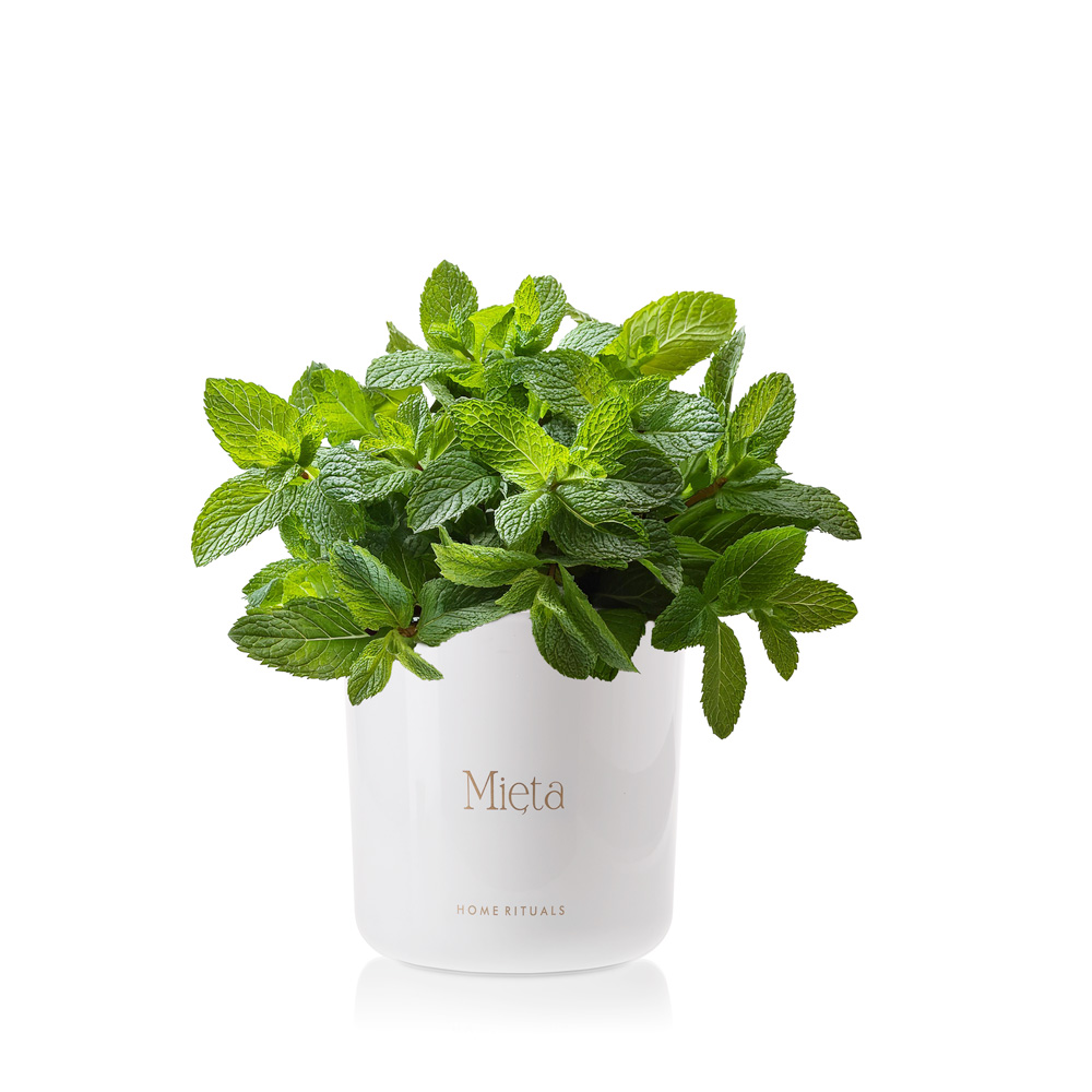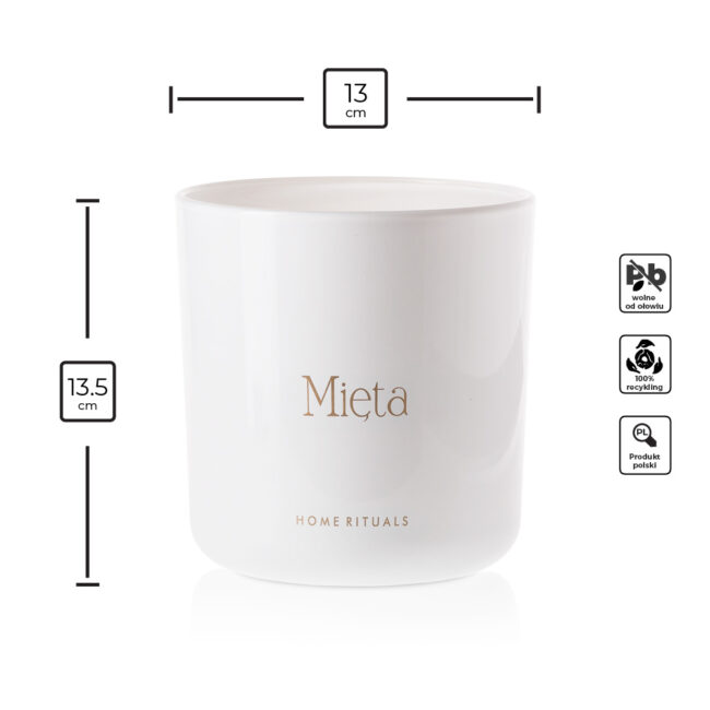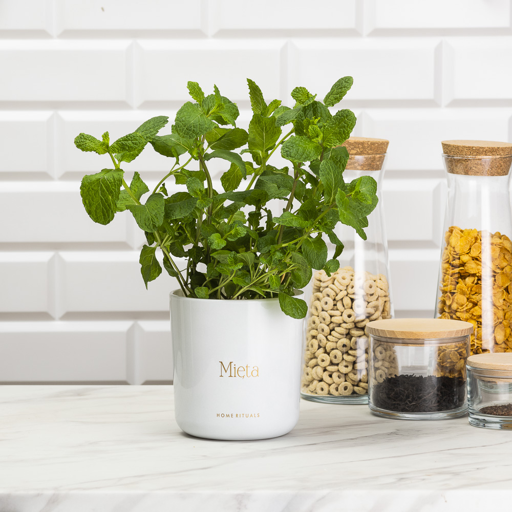 Doniczka osłonka biała ze złotym napisem Mięta 13cm