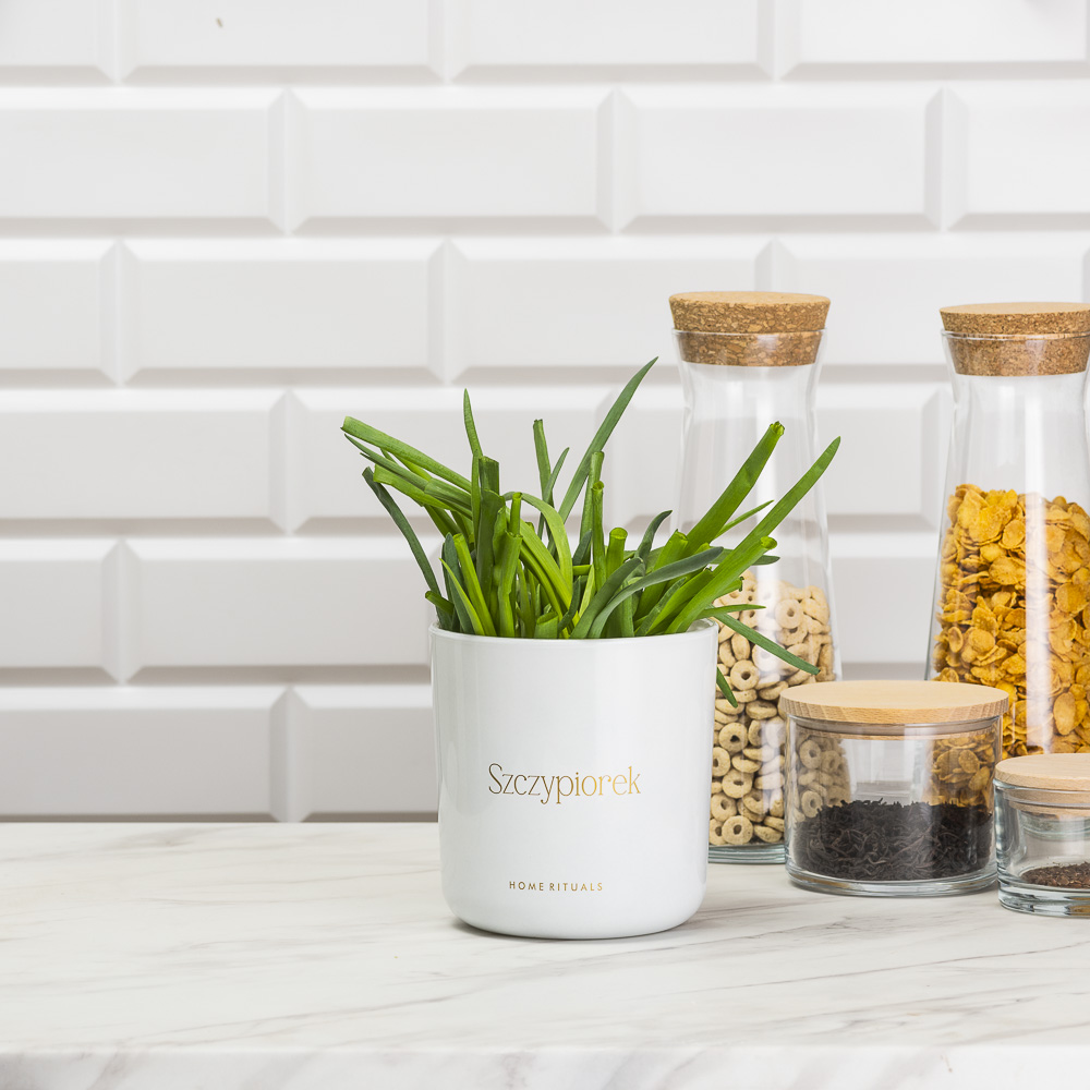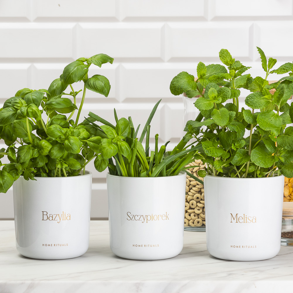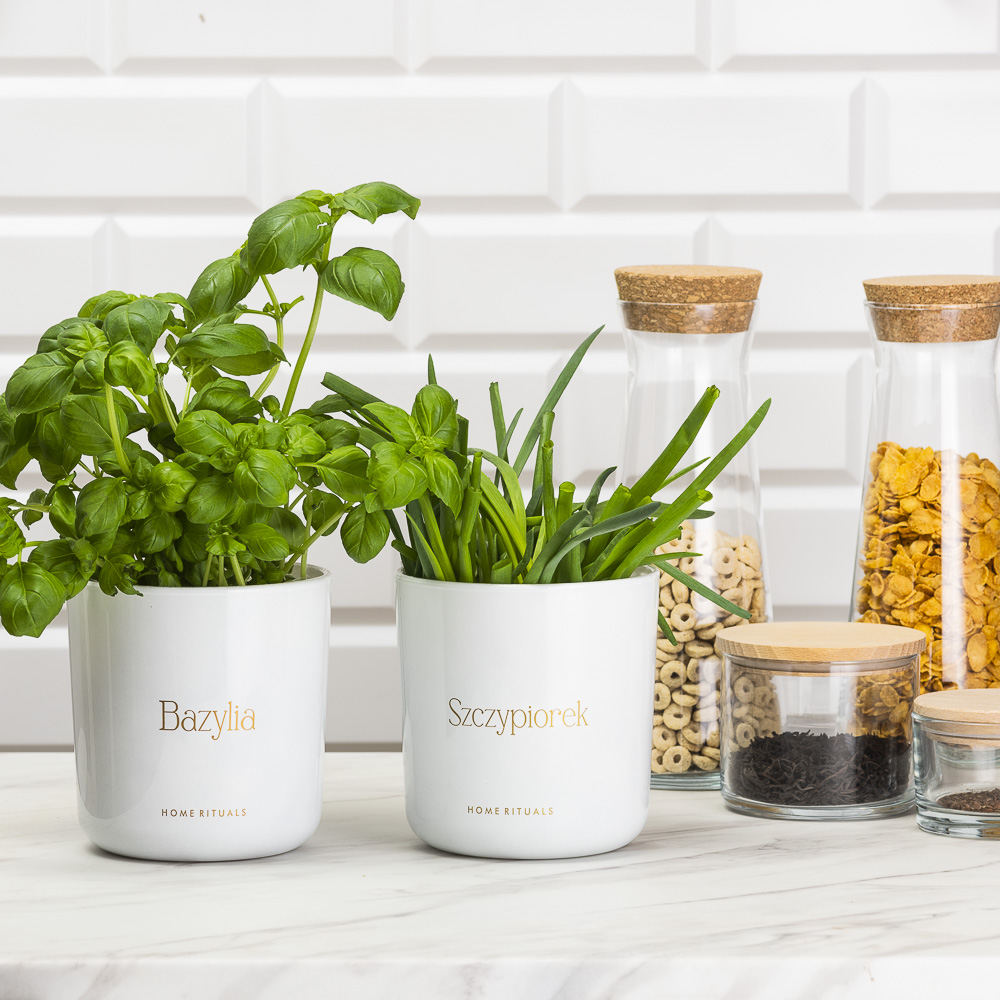 Stylowy napis wykonany metodą sitodruku w kolorze złotym nie tylko dodaje wyjątkowej klasy, ale również ułatwia organizację domowego zielnika, pomagając w estetycznej segregacji ziół.