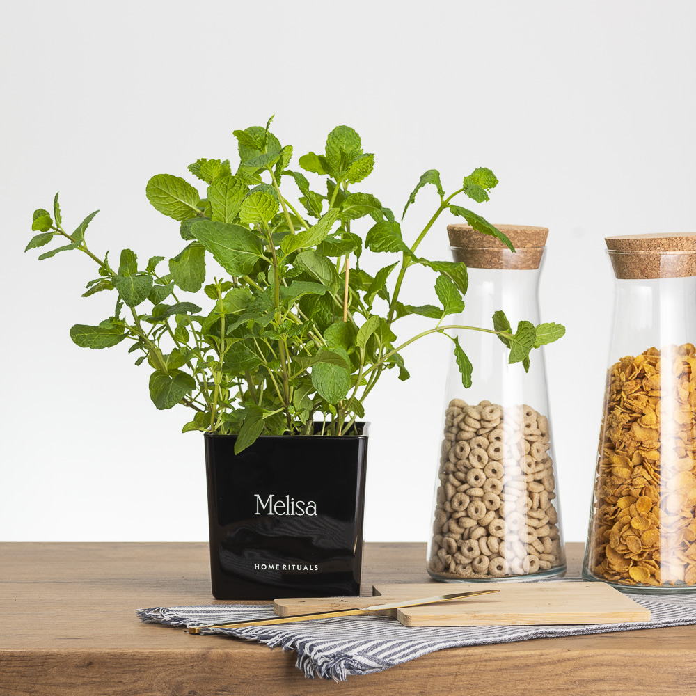 Doniczka na zioła w czarnym połysku, z subtelnym białym napisem „Melisa”, jest doskonałym połączeniem elegancji i funkcjonalności, które świetnie wpisuje się w nowoczesne i minimalistyczne wnętrza. Czarna błyszcząca powierzchnia doniczki emanuje prostotą, a jej delikatna tekstura nadaje jej przytulny, ale zarazem elegancki charakter. Biały napis, subtelnie wyeksponowany na frontowej stronie, wprowadza do całości odrobinę luksusu i sprawia, że całość nabiera wyrafinowanego wyrazu.