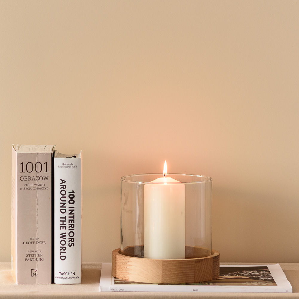 Świecznik cylinder wazon z drewniana pokrywka, nr produktu: 35721 Z PODSTAWK D18 H3,8