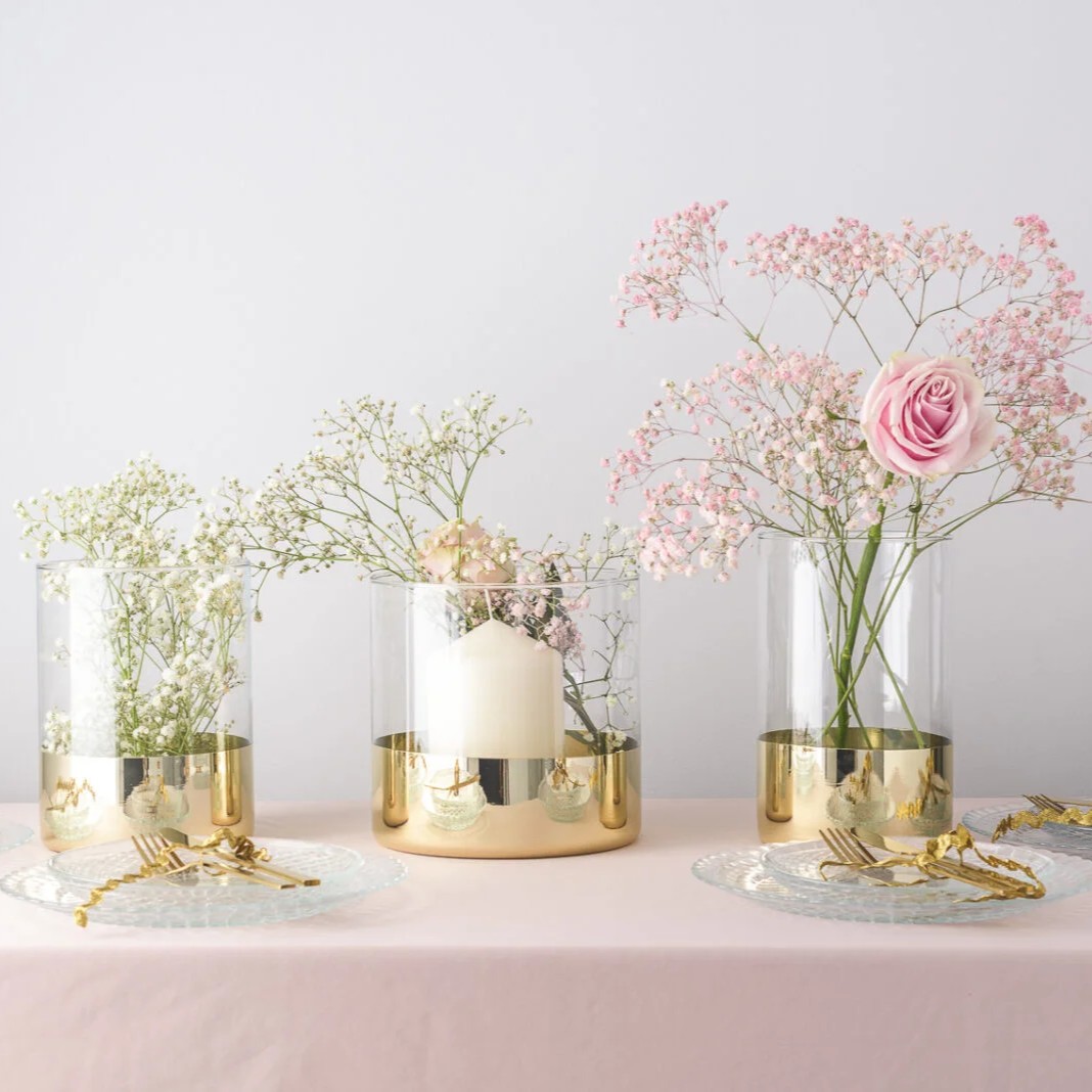 Napisz pierwszą opinię o „Wazon szklany świecznik z paskiem złotym H 19 cm.”