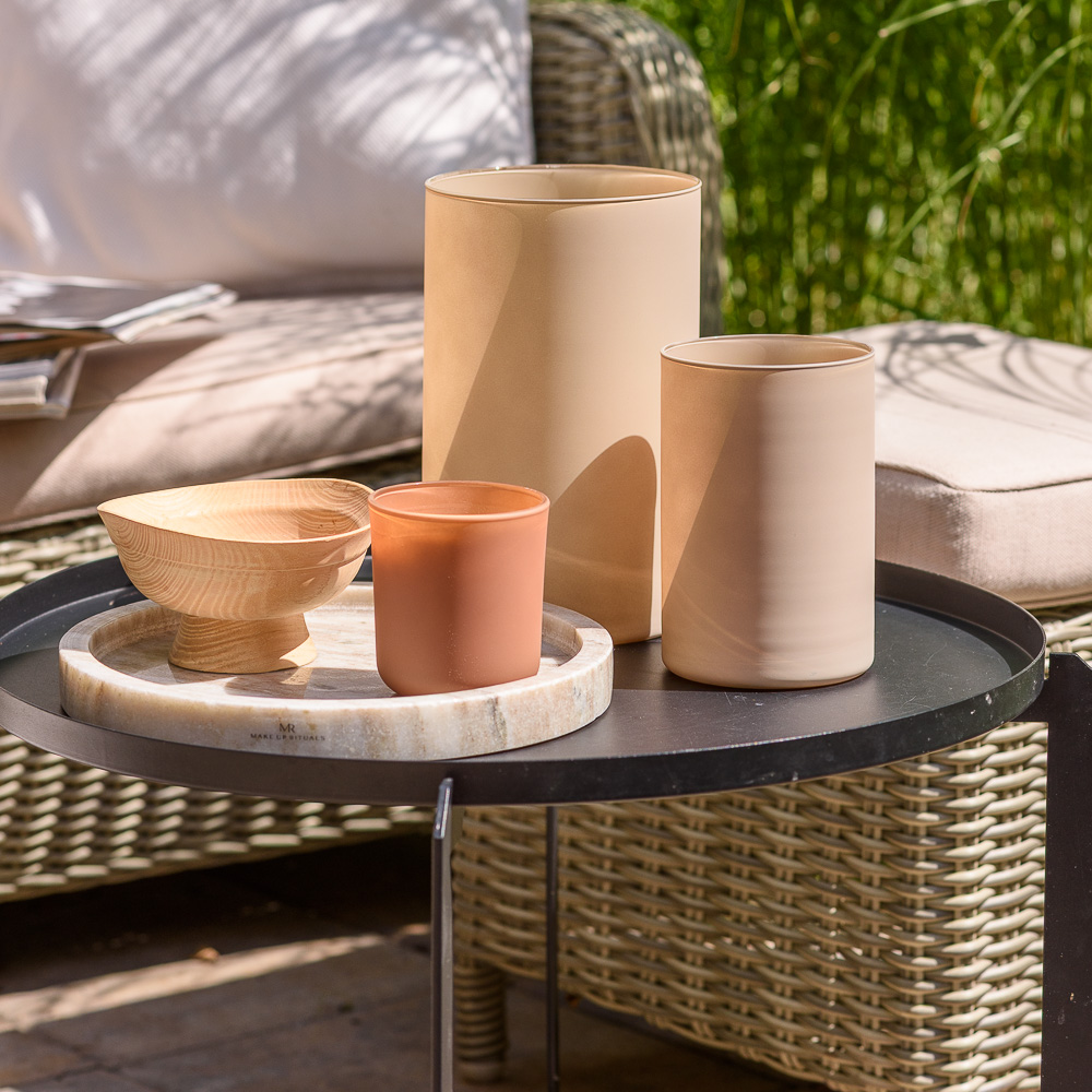 Jego minimalistyczny kształt i delikatna, ciepła kolorystyka sprawiają, że pasuje niemal wszędzie – zarówno do wnętrz, jak i aranżacji plenerowych.