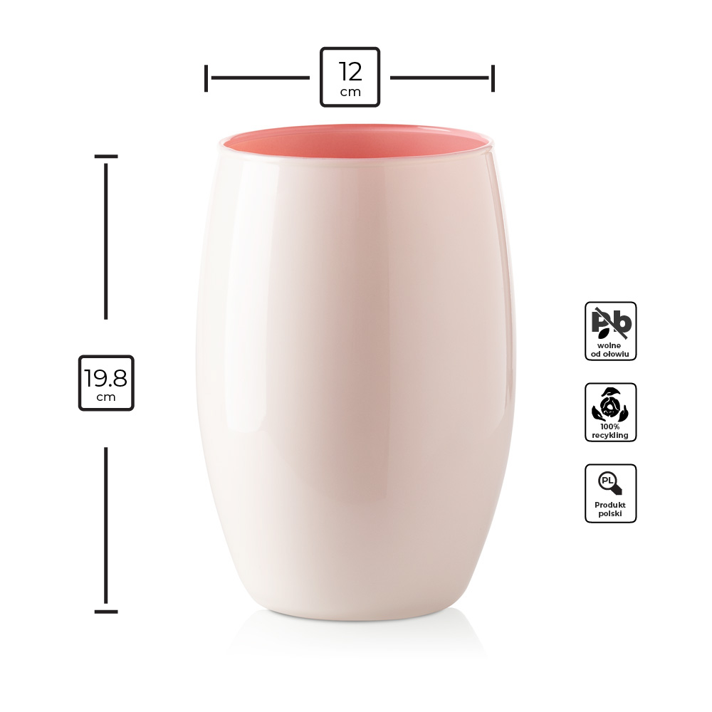 Wazon szklany DUO kremowo różowy 20 cm