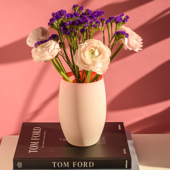 Kremowy wazon z subtelnym różowym wnętrzem to kwintesencja wiosennej świeżości i elegancji.