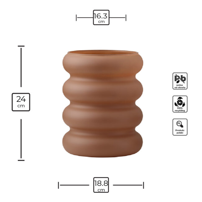 Wazon szklany na kwiaty i dekoracje brąz soft touch 24 cm