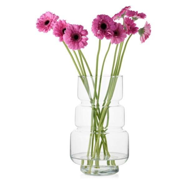 Świetnie eksponuje bukiety świeżych kwiatów, ale równie efektownie prezentuje się solo – jako designerski obiekt na stole, komodzie czy konsoli.
