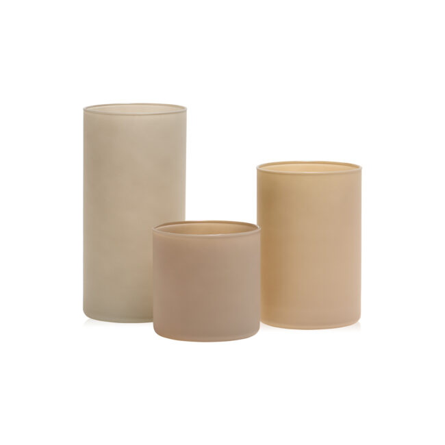 Matowa powierzchnia szkła jest przyjemna w dotyku i delikatnie rozprasza światło, dzięki czemu wazony prezentują się niezwykle elegancko zarówno w ciągu dnia, jak i przy wieczornym oświetleniu.