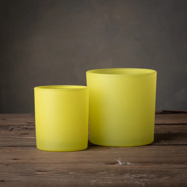 Pojemnik szklany żółty świetnie sprawdzi się jako naczynie do zalewu świec zapachowych.