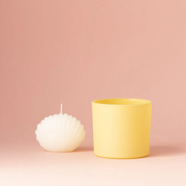 Przedstawiamy Wam nasz luksusowy szklany pojemnik do świec w słonecznym, żółtym odcieniu z aksamitnym wykończeniem soft touch. Ten niezwykły produkt został stworzony z myślą o profesjonalistach, którzy pragną nadać swoim świecom wyjątkowy charakter i podkreślić ich elegancję.