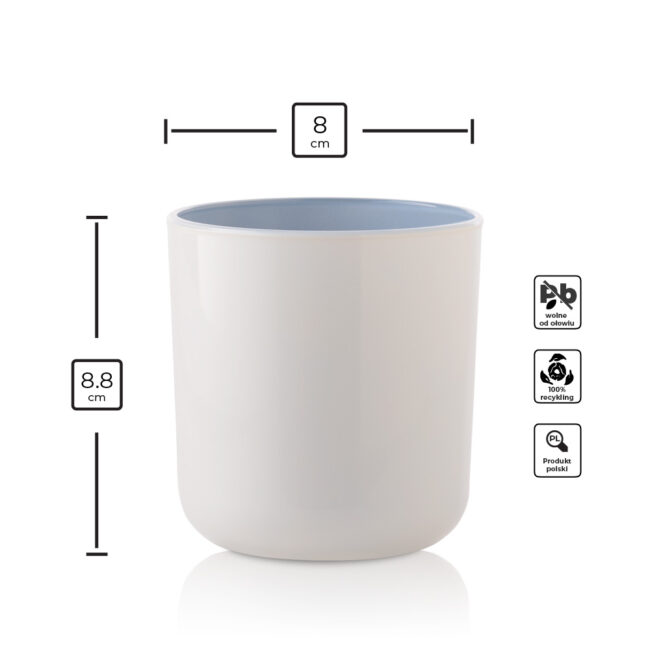 Wiosenny pojemnik na świece to harmonijne połączenie delikatności i elegancji. Zewnętrzna warstwa zachwyca subtelnym kremowym kolorem, który wprowadza do wnętrza spokój i klasyczny urok. Wnętrze pojemnika natomiast odkrywa piękny, wiosenny odcień błękitu – ciepły i radosny akcent, który idealnie oddaje atmosferę budzącej się do życia natury.