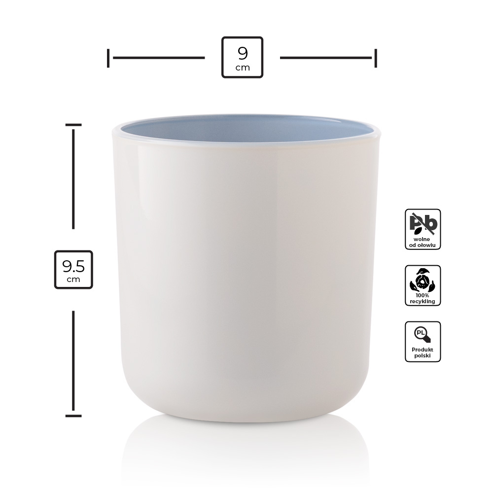Wiosenny pojemnik na świece to harmonijne połączenie delikatności i elegancji. Zewnętrzna warstwa zachwyca subtelnym kremowym kolorem, który wprowadza do wnętrza spokój i klasyczny urok. Wnętrze pojemnika natomiast odkrywa piękny, wiosenny odcień błekitu – ciepły i radosny akcent, który idealnie oddaje atmosferę budzącej się do życia natury.