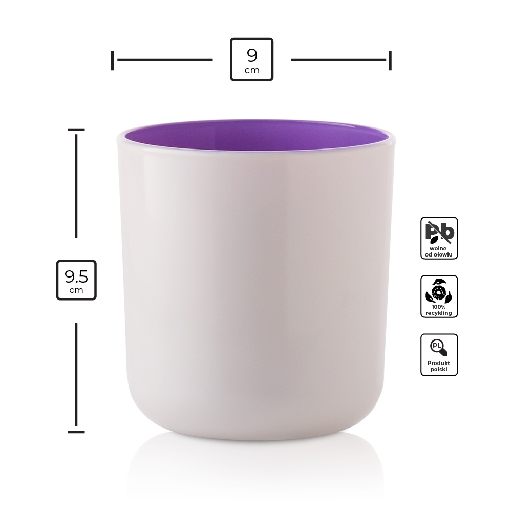 Wiosenny pojemnik na świece to harmonijne połączenie delikatności i elegancji. Zewnętrzna warstwa zachwyca subtelnym kremowym kolorem, który wprowadza do wnętrza spokój i klasyczny urok. Wnętrze pojemnika natomiast odkrywa piękny, wiosenny odcień fioletu – ciepły i radosny akcent, który idealnie oddaje atmosferę budzącej się do życia natury.