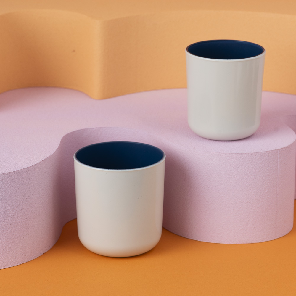 Wiosenny pojemnik na świece to harmonijne połączenie delikatności i elegancji. Zewnętrzna warstwa zachwyca subtelnym kremowym kolorem, który wprowadza do wnętrza spokój i klasyczny urok. Wnętrze pojemnika natomiast odkrywa piękny, wiosenny odcień granatu – ciepły i radosny akcent, który idealnie oddaje atmosferę budzącej się do życia natury.