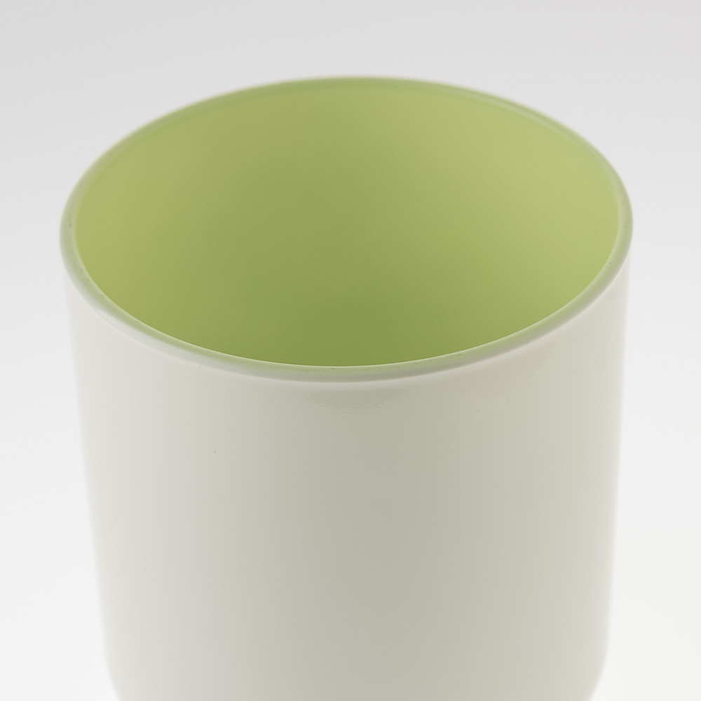 Wiosenny pojemnik na świece to harmonijne połączenie delikatności i elegancji. Zewnętrzna warstwa zachwyca subtelnym kremowym kolorem, który wprowadza do wnętrza spokój i klasyczny urok. Wnętrze pojemnika natomiast odkrywa piękny, wiosenny odcień zieleni – ciepły i radosny akcent, który idealnie oddaje atmosferę budzącej się do życia natury.