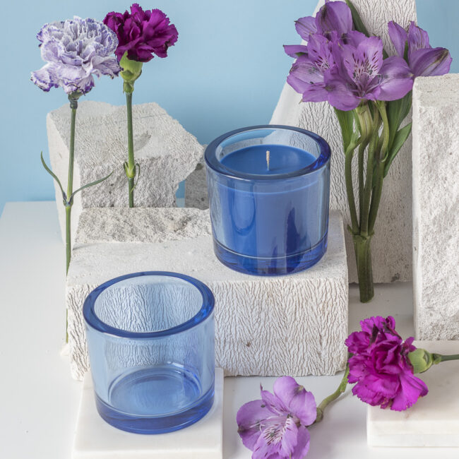 Szklany pojemnik do zalewu świec – niebieska elegancja