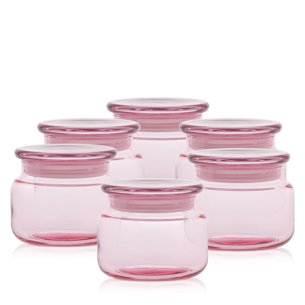 Szklany pojemnik z pokrywką do zalewu LUMINA 420 ml różowy transparent 35531 kpl 6 szt