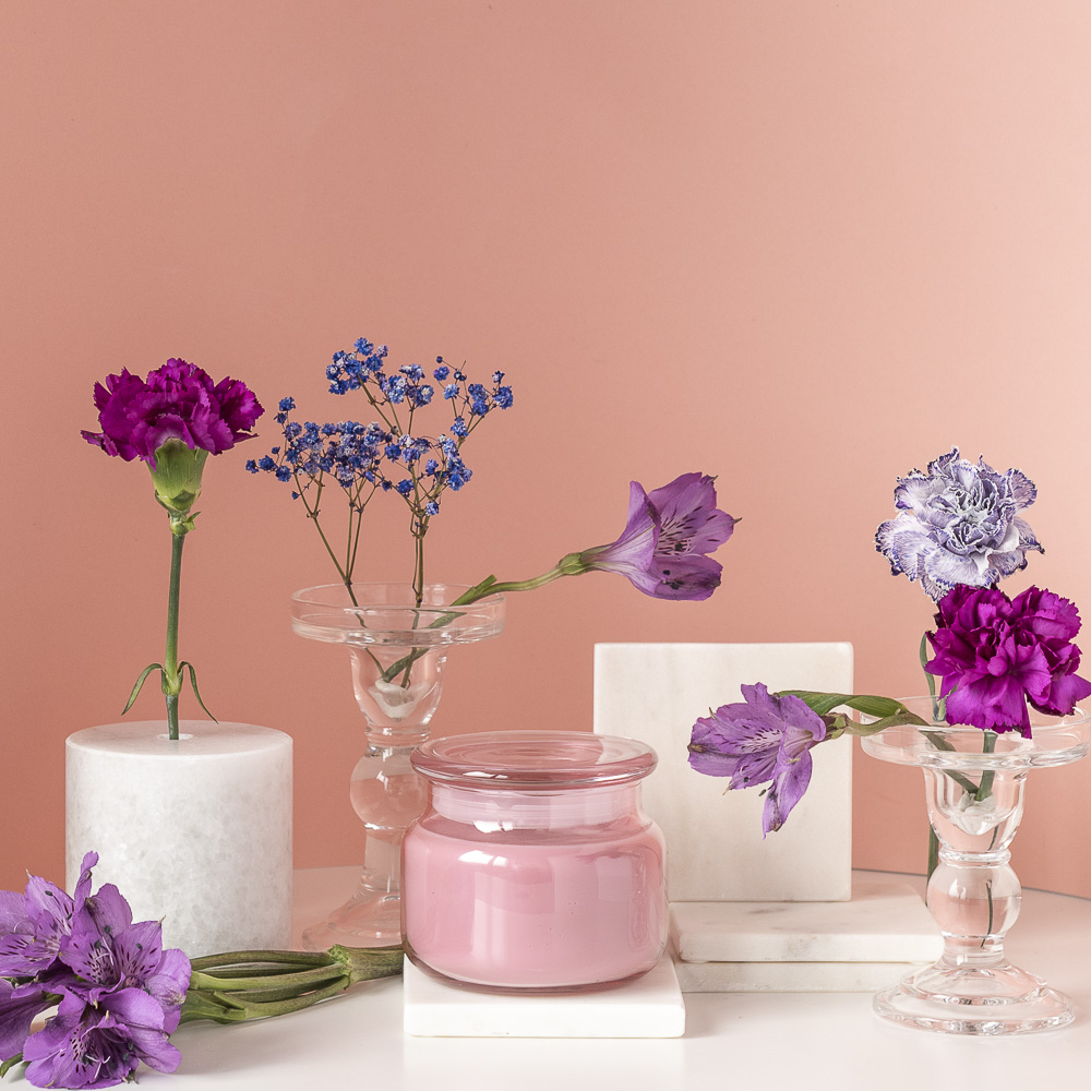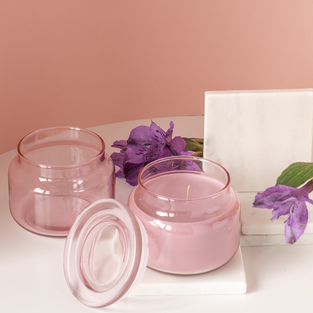 Pojemnik na świece z pokrywką – transparentny pastelowy róż