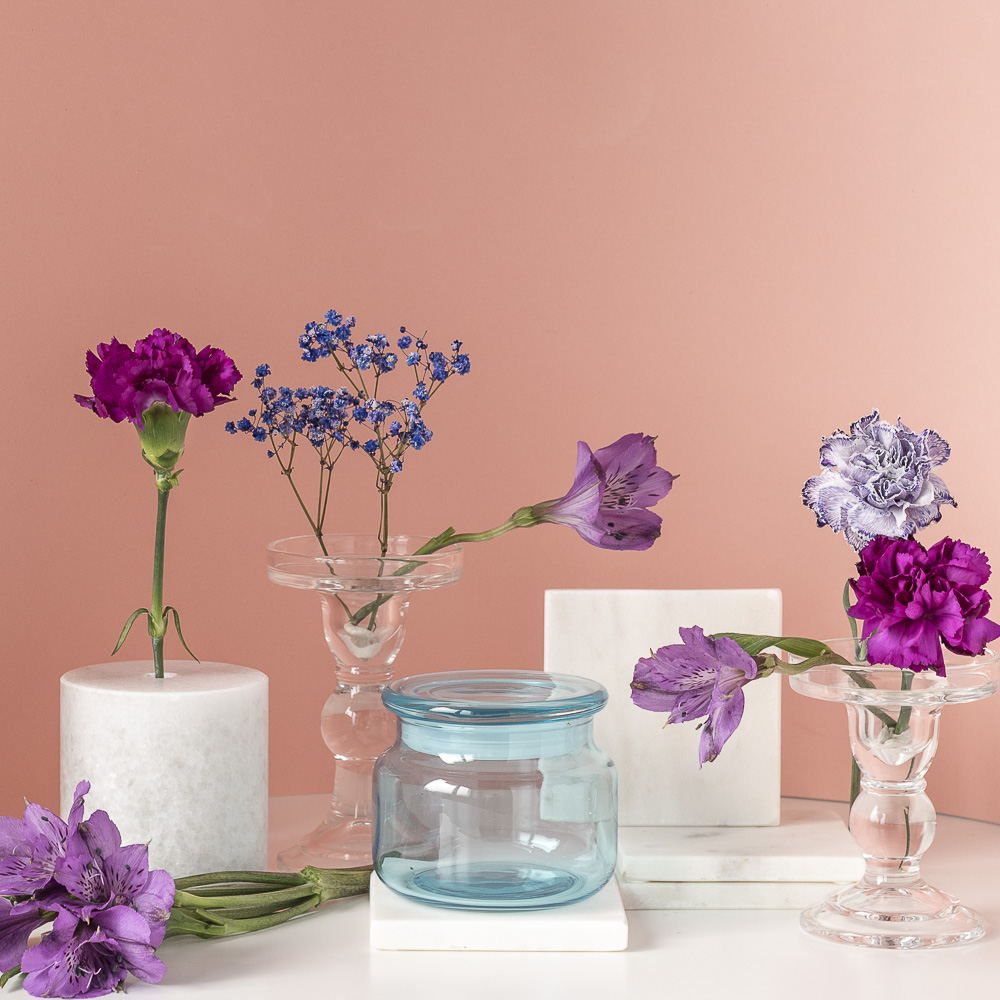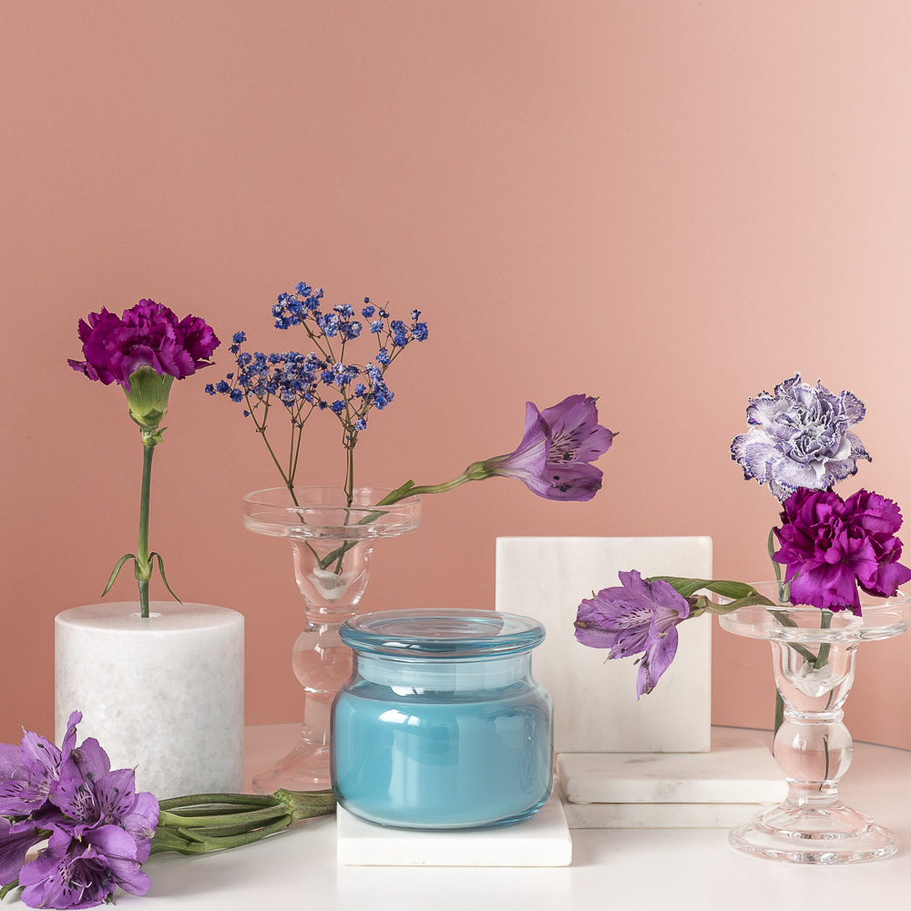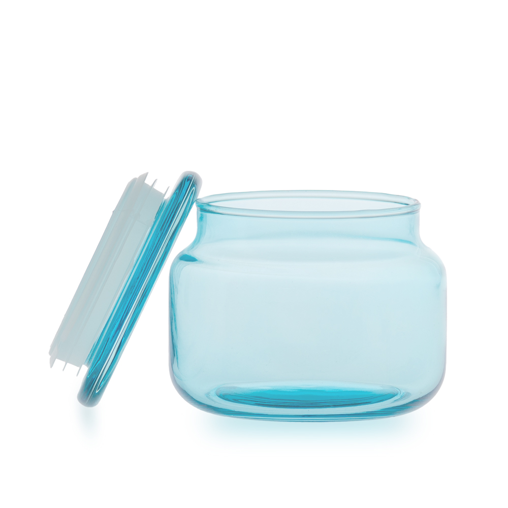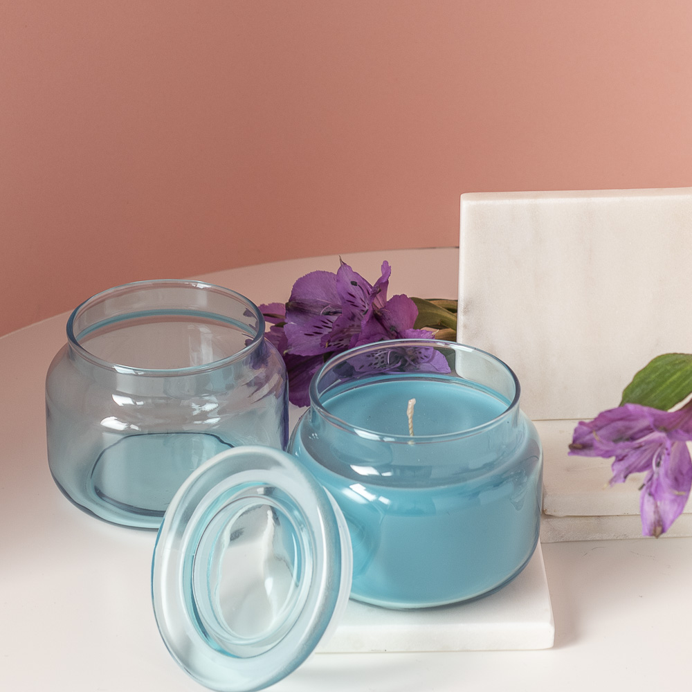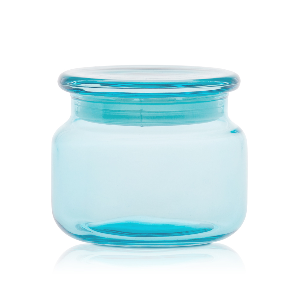 Pojemnik na świece z pokrywką – transparentny pastelowy turkus