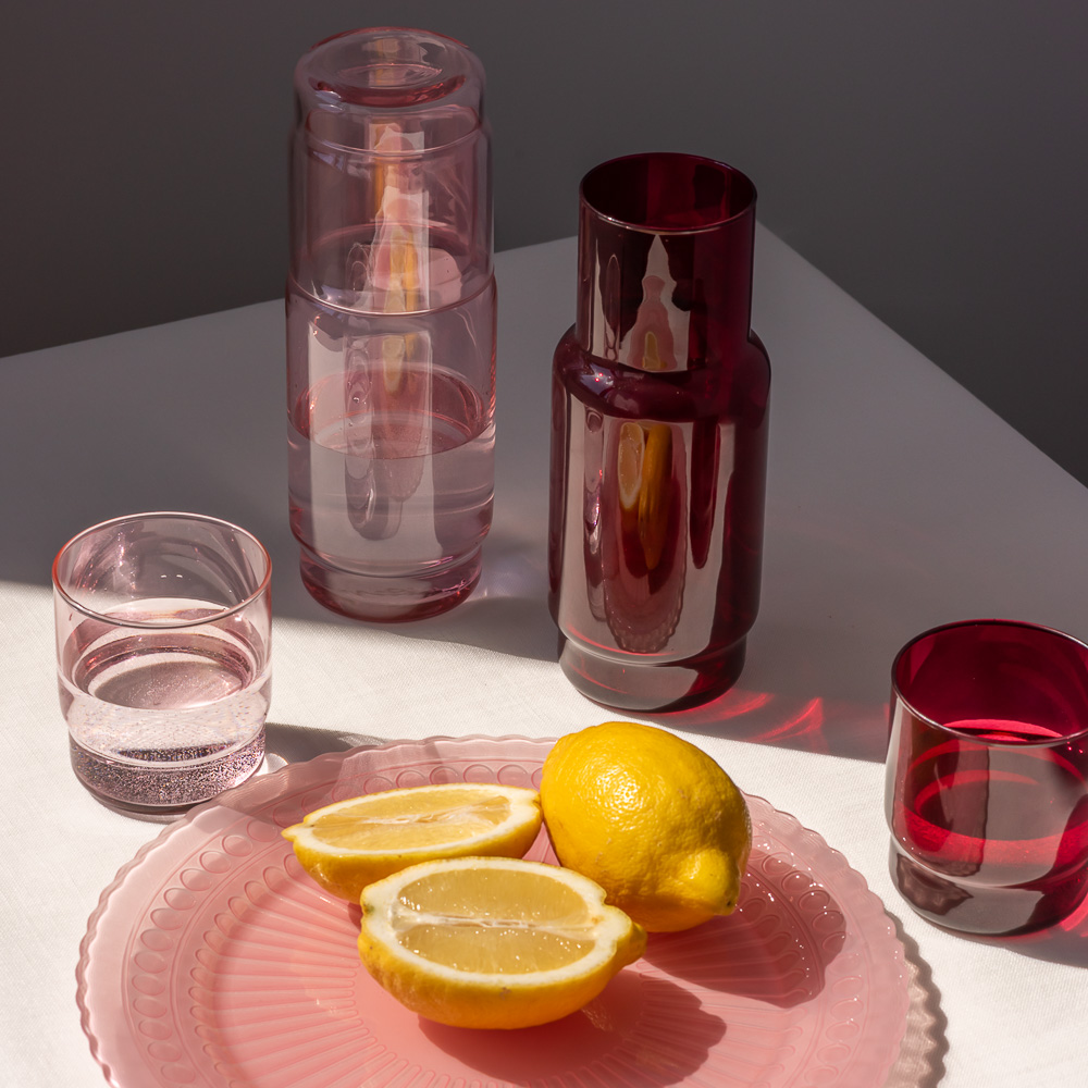 Bordowa karafka CRISTAL wprowadza do aranżacji lekkość i świeżość. Transparentne szkło pięknie odbija światło i podkreśla naturalne dodatki – cytrusy, miętę czy kostki lodu. Idealna do jasnych, spokojnych wnętrz i letnich aranżacji stołu. W połączeniu ze szklankami z kolekcji CRISTAL tworzy spójny, lekki i stylowy zestaw.