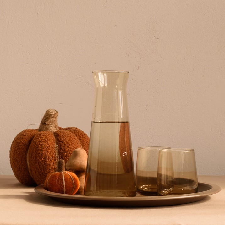 Karafka ze szkła w stylu ombre to kwintesencja klasy i wyrafinowania. Wykonana z najwyższej jakości szkła, zapewnia wytrzymałość i zachwyca pięknym wyglądem przez wiele lat. Jej subtelne cieniowanie w kolorze brązowym dodaje unikalnego charakteru i wyróżnia każde wnętrze.