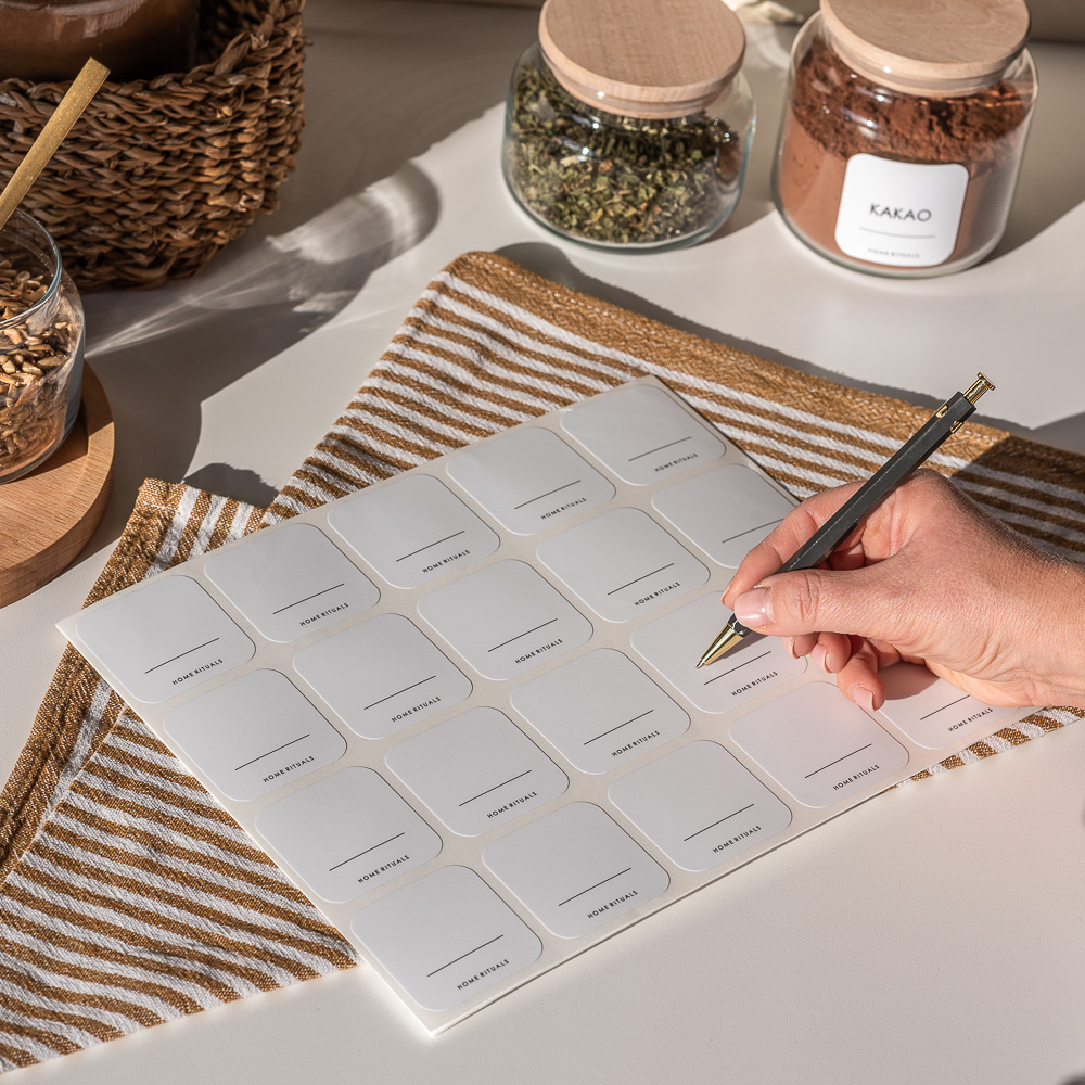 Minimalistyczne, samoprzylepne etykiety do opisywania przypraw i produktów sypkich – idealne do kuchni i spiżarni. Wysokiej jakości, laminowane, odporne na wilgoć i zabrudzenia – dzięki nim stworzysz spójny, estetyczny system organizacji dopasowany dokładnie do swoich potrzeb.