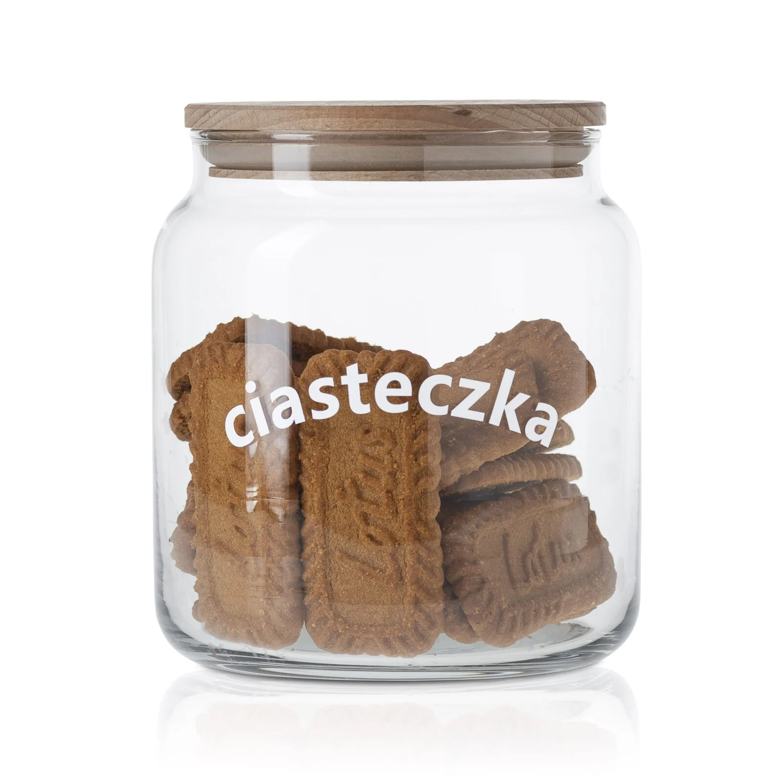 Pojemnik szklany do przechowywania soli z modnym, złotym nadrukiem.
