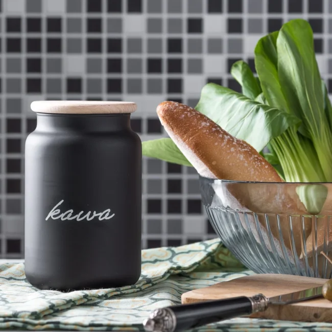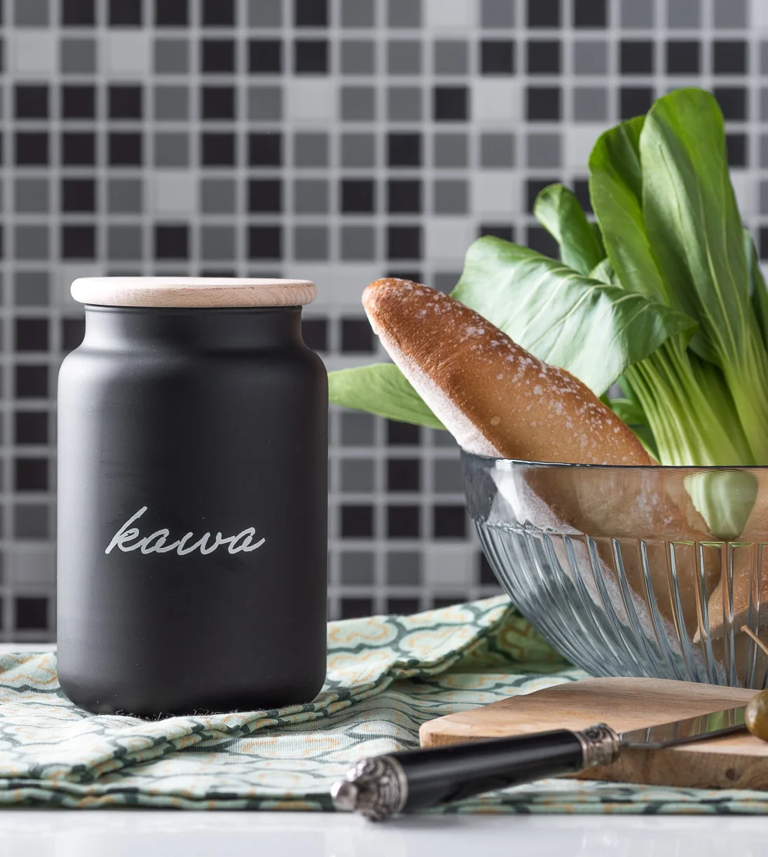 Pojemnik czarny z napisem kawa idealnie wpasuje się w wystrój każdej kuchni.