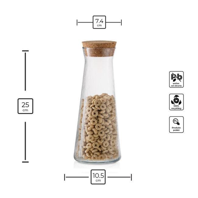 Pojemnik szklany do przechowywania PURE z korkiem 25 cm