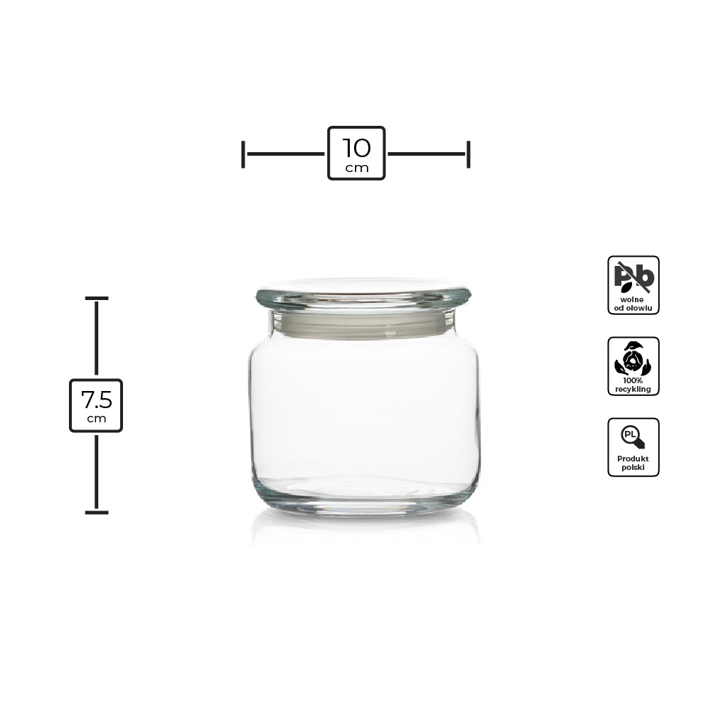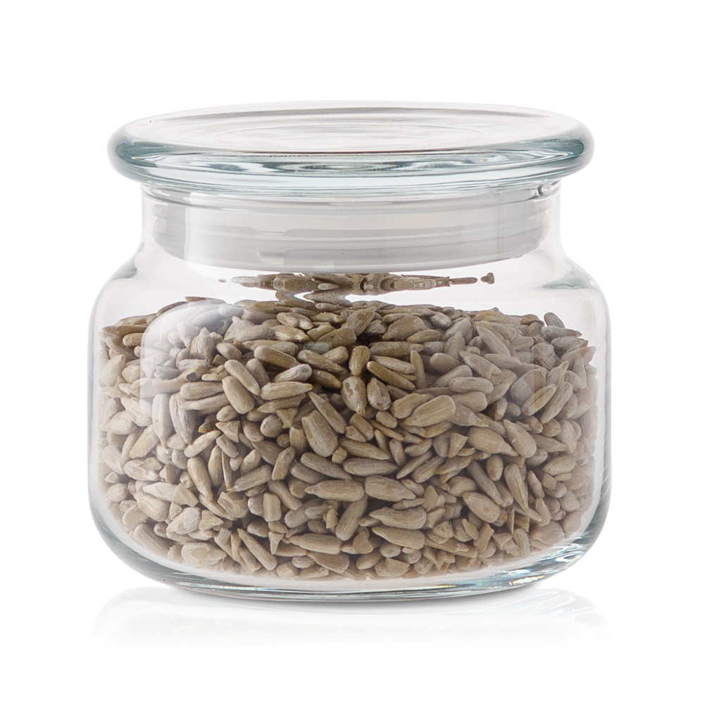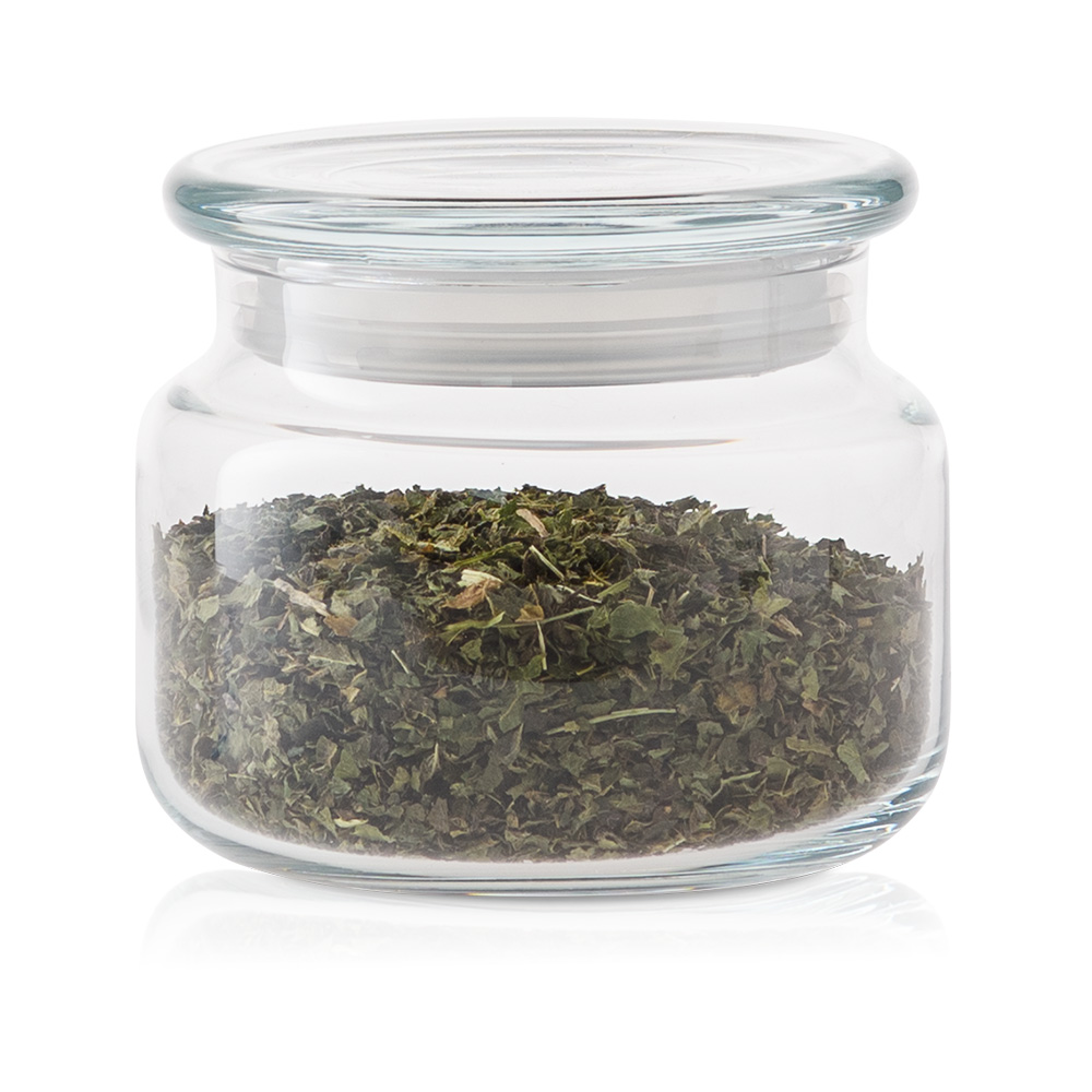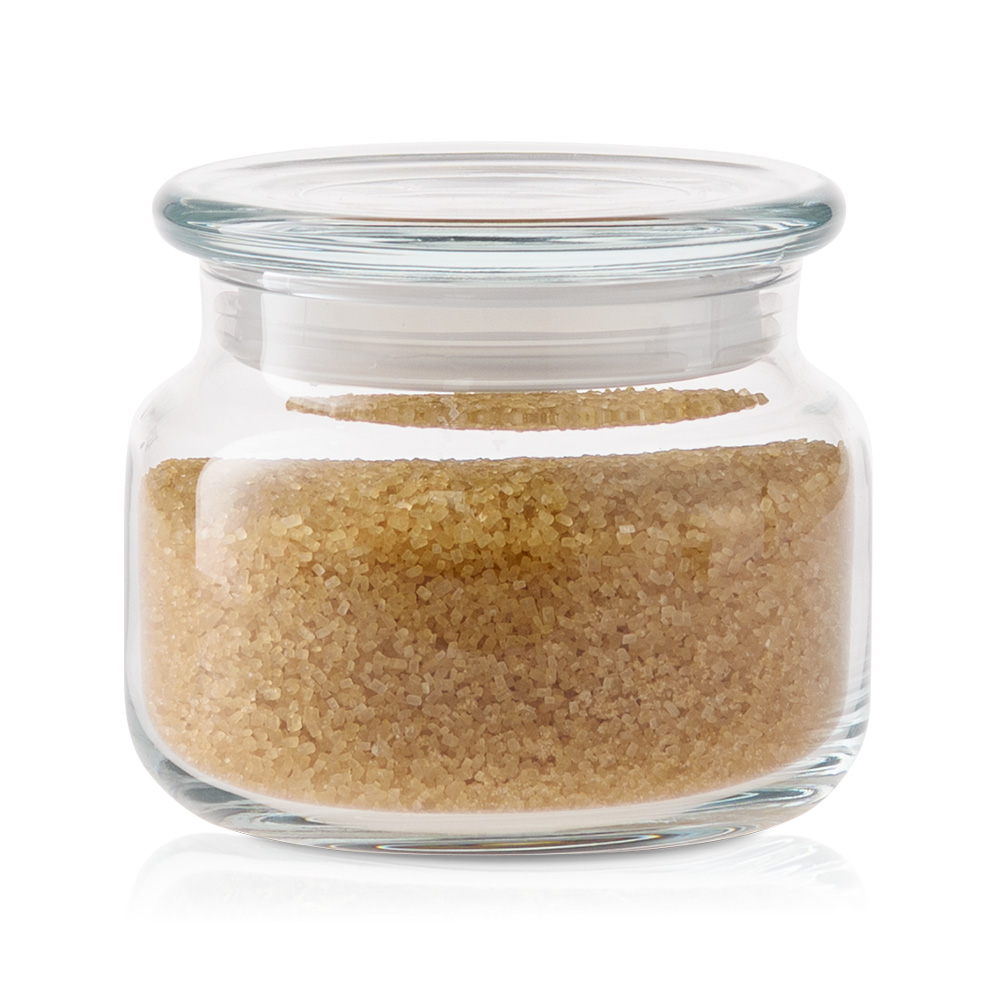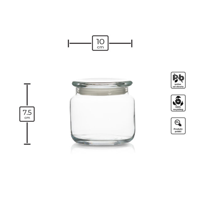 Solidne szklane wieczko zabezpiecza zawartość przed wilgocią i utratą aromatu, zapewniając dłuższą świeżość produktów.
