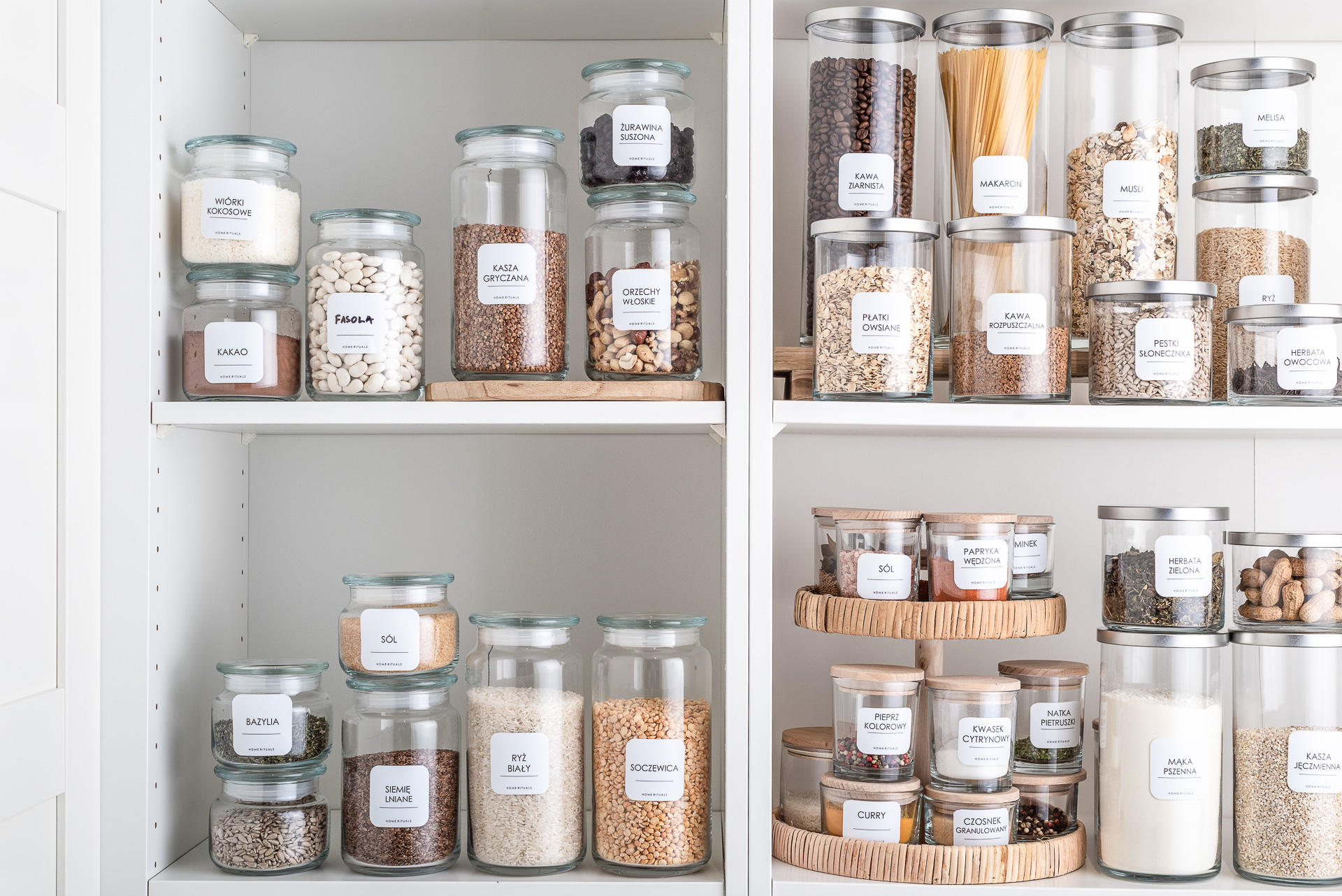 Aby ułatwić organizację, kolekcję PURE można uzupełnić o eleganckie naklejki, które pozwalają szybko odnaleźć odpowiednie składniki i i dobrze zorganizować domową spiżarnię.
