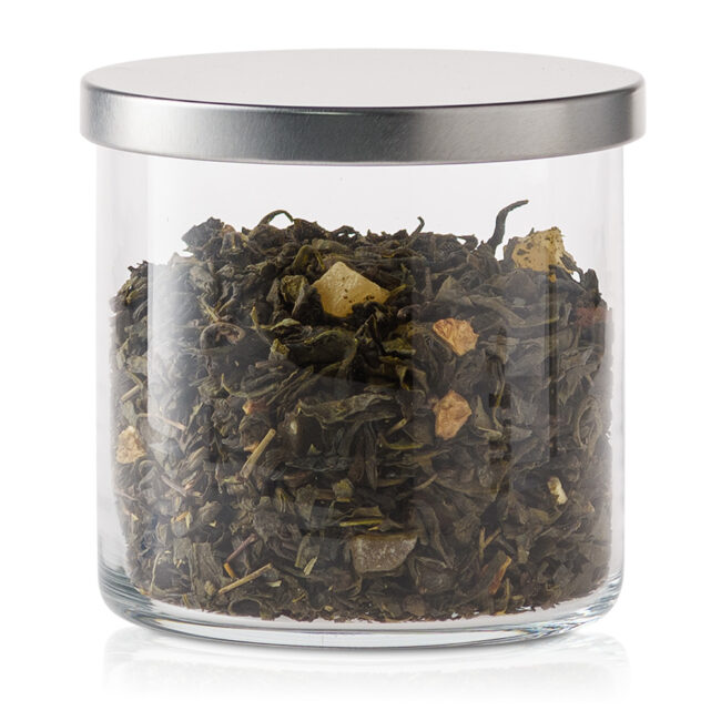 Solidne metalowe wieczko zabezpiecza zawartość przed wilgocią i utratą aromatu, zapewniając dłuższą świeżość produktów.