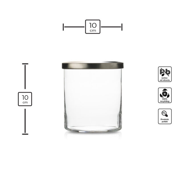 Praktyczny i elegancki szklany pojemnik do przechowywania z deklem metalowym to doskonałe rozwiązanie do przechowywania różnorodnych produktów spożywczych. Jego uniwersalna, cylindryczna forma sprawia, że pasuje do każdej kuchni, a przezroczyste szkło pozwala na szybkie sprawdzenie zawartości.