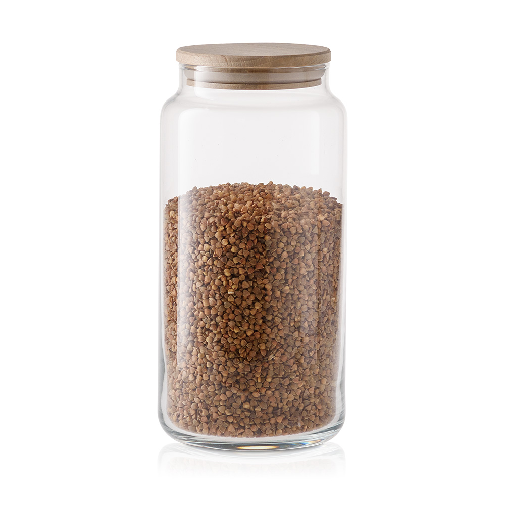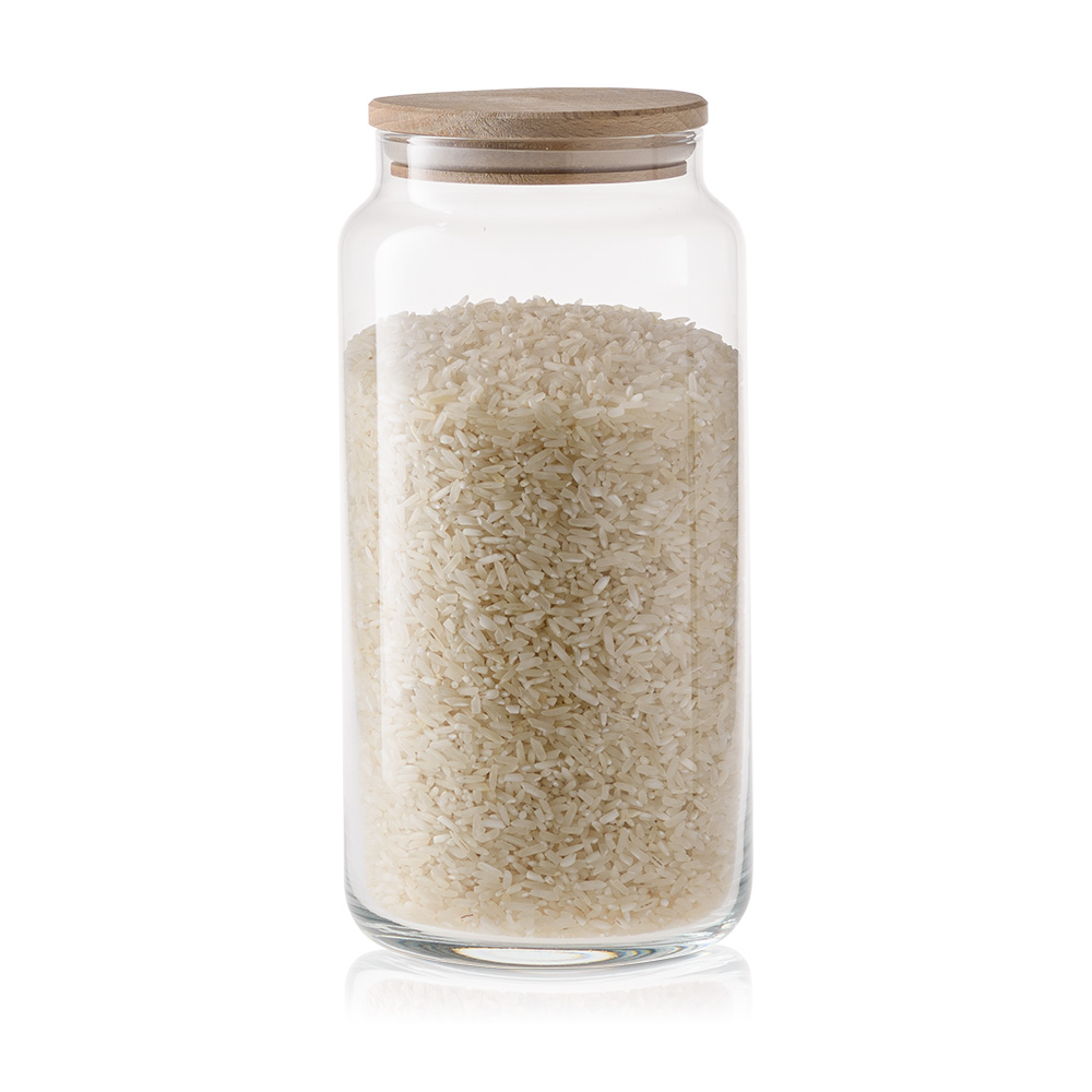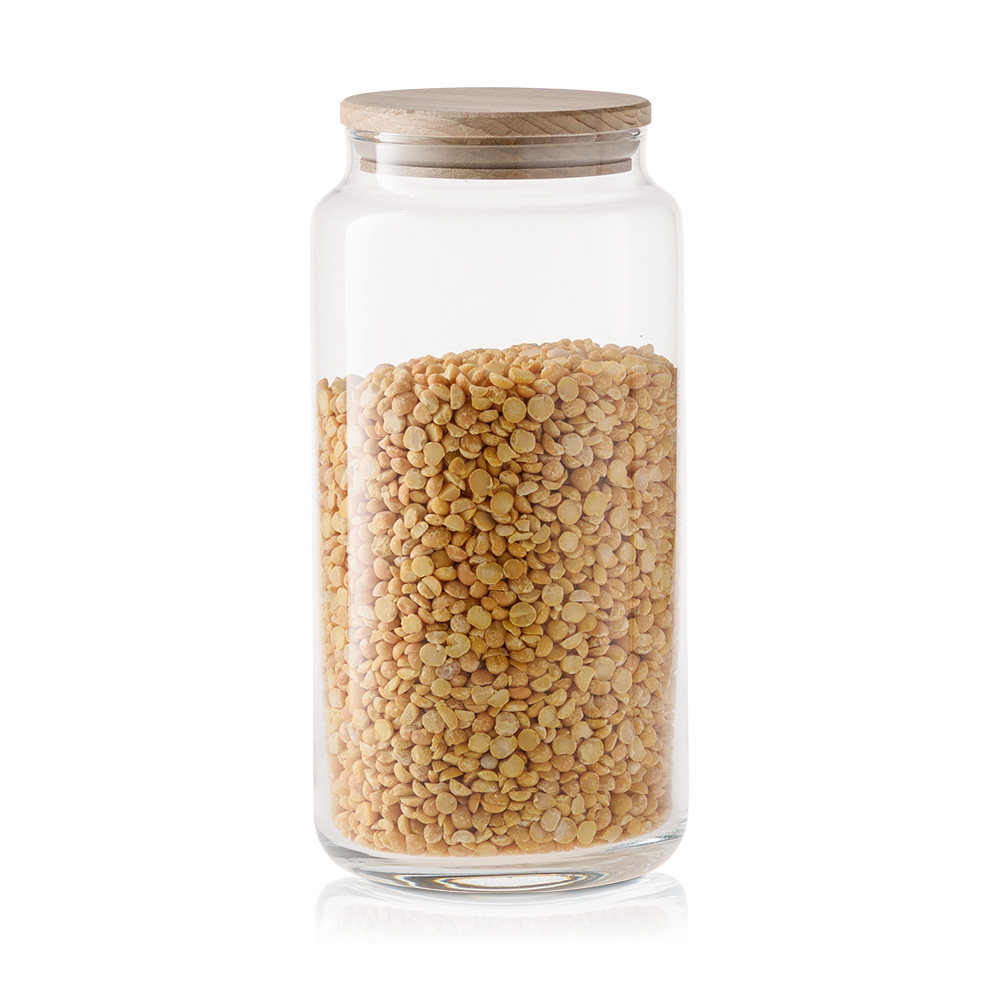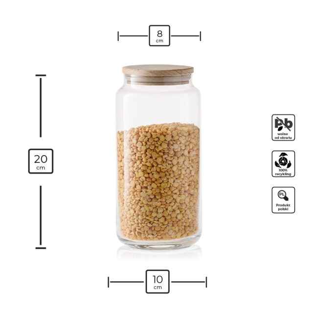 Praktyczny i elegancki szklany pojemnik do przechowywania z deklem drewnianym to doskonałe rozwiązanie do przechowywania różnorodnych produktów spożywczych. Jego uniwersalna, cylindryczna forma sprawia, że pasuje do każdej kuchni, a przezroczyste szkło pozwala na szybkie sprawdzenie zawartości.
