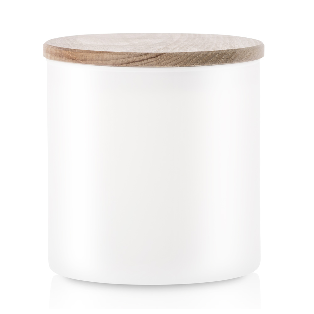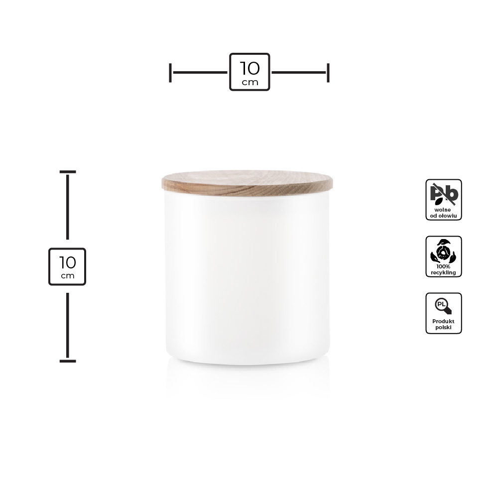 Praktyczny szklany pojemnik do przechowywania w kolorze białego matu z deklem drewnianym to doskonałe rozwiązanie do przechowywania różnorodnych produktów spożywczych. Jego uniwersalna, cylindryczna forma sprawia, że pasuje do każdej kuchni.