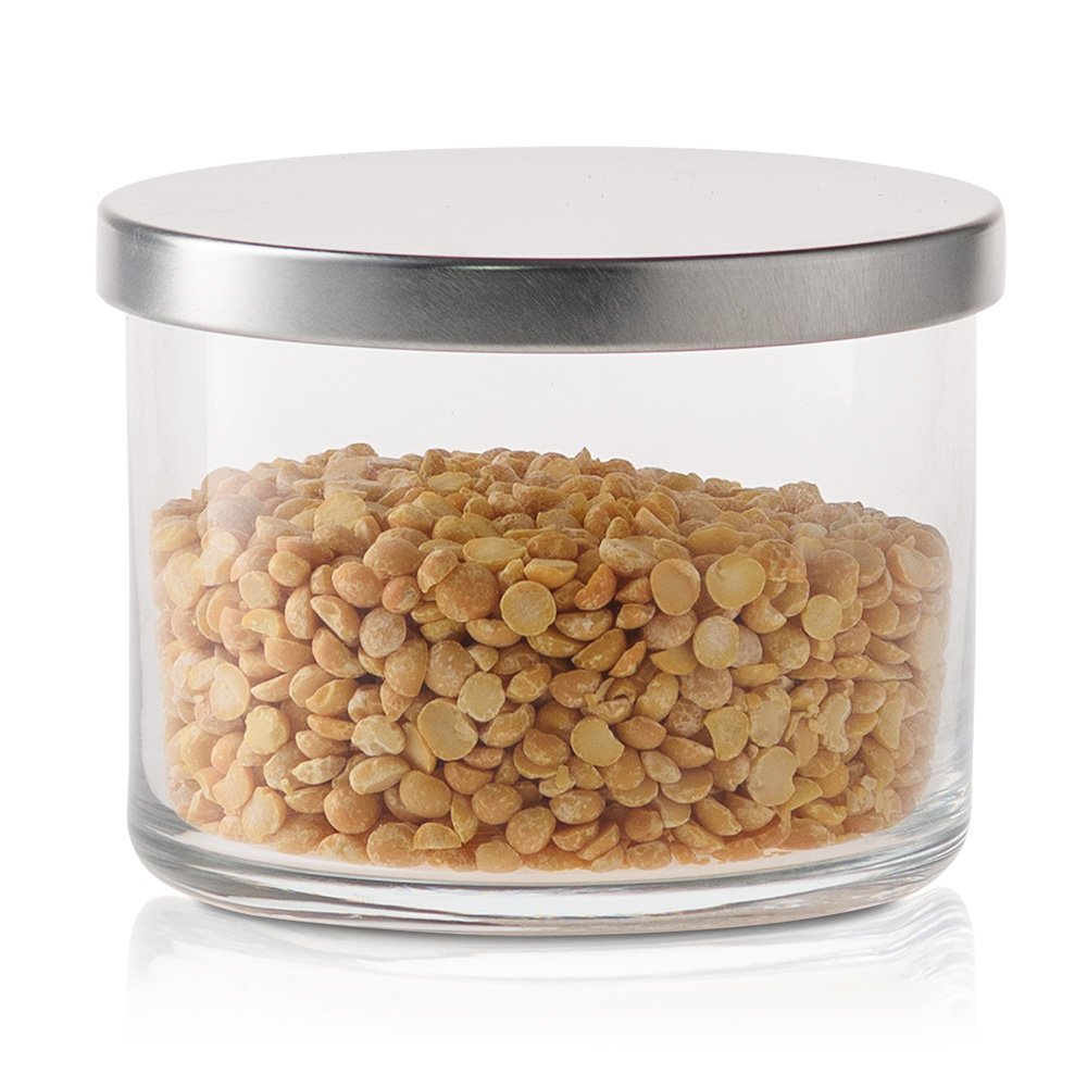 Praktyczny i elegancki szklany pojemnik do przechowywania z deklem metalowym to doskonałe rozwiązanie do przechowywania różnorodnych produktów spożywczych. Jego uniwersalna, cylindryczna forma sprawia, że pasuje do każdej kuchni, a przezroczyste szkło pozwala na szybkie sprawdzenie zawartości.