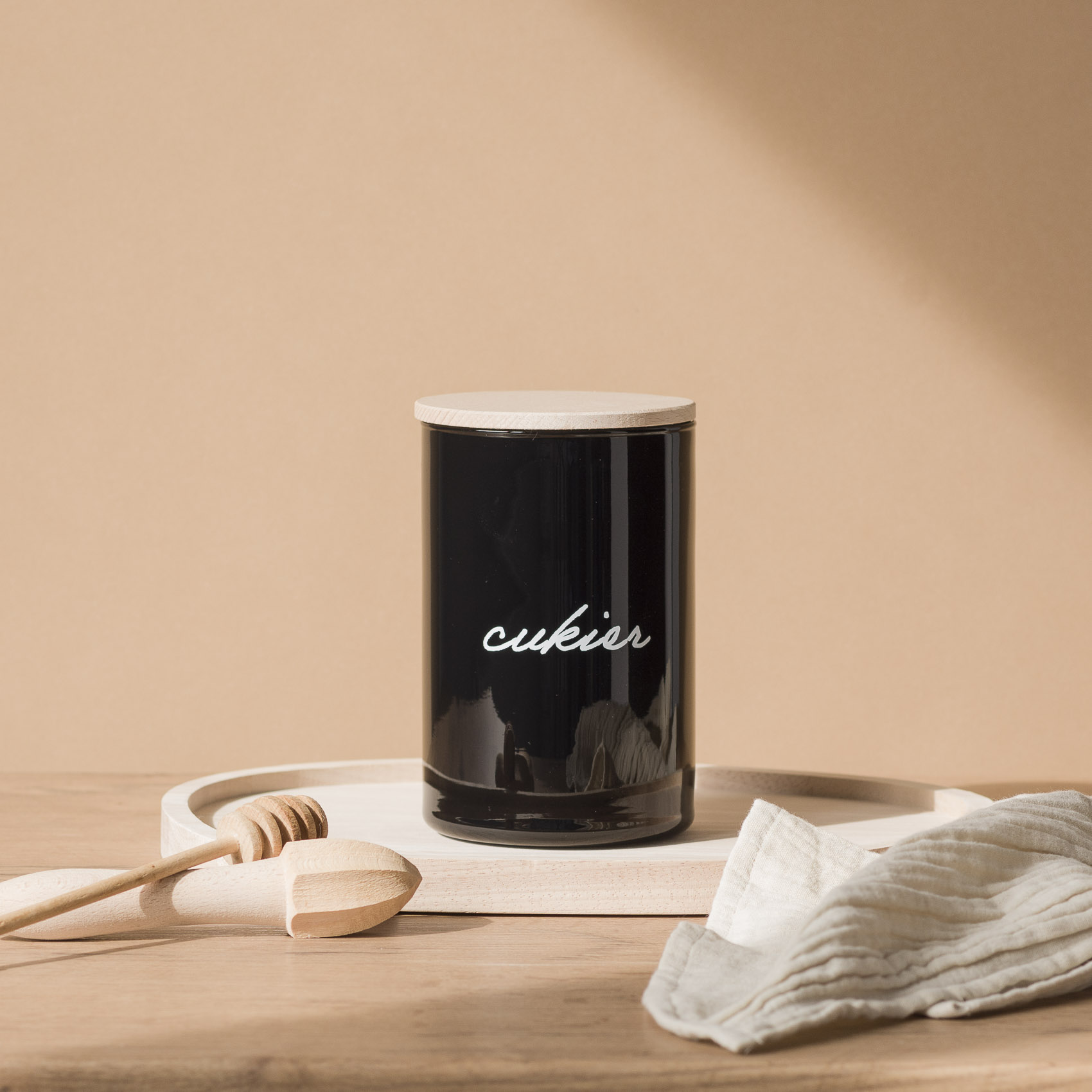 Czarny pojemnik na herbatę idealnie sprawdzi się w każdej kuchni.