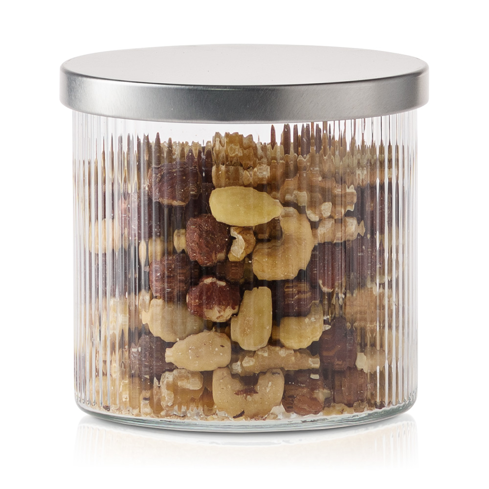 Solidne metalowe wieczko z uszczelką, zabezpiecza zawartość przed wilgocią i utratą aromatu, zapewniając dłuższą świeżość produktów.
