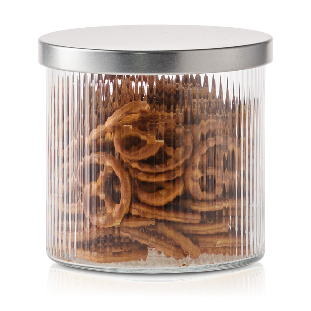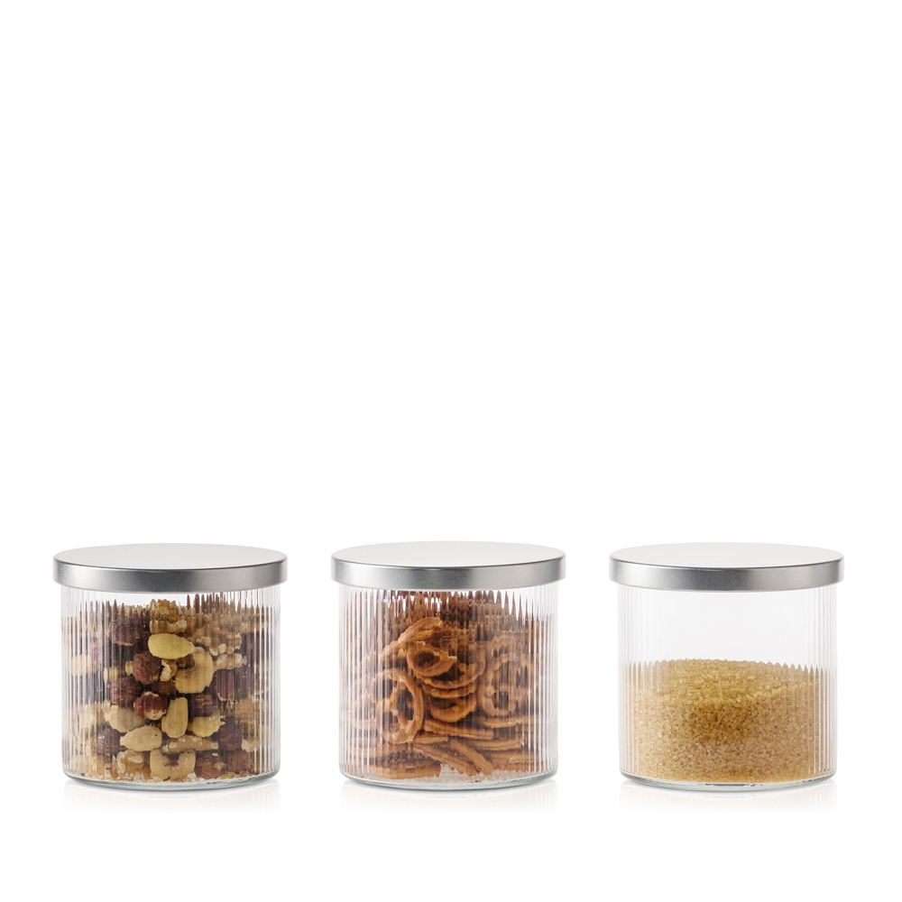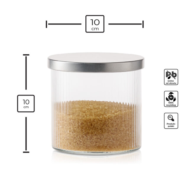 Praktyczny i elegancki zestaw szklanych pojemników do przechowywania z deklem metalowym to doskonałe rozwiązanie do przechowywania różnorodnych produktów spożywczych. Jego uniwersalna, cylindryczna forma sprawia, że pasuje do każdej kuchni, a przezroczyste szkło pozwala na szybkie sprawdzenie zawartości.