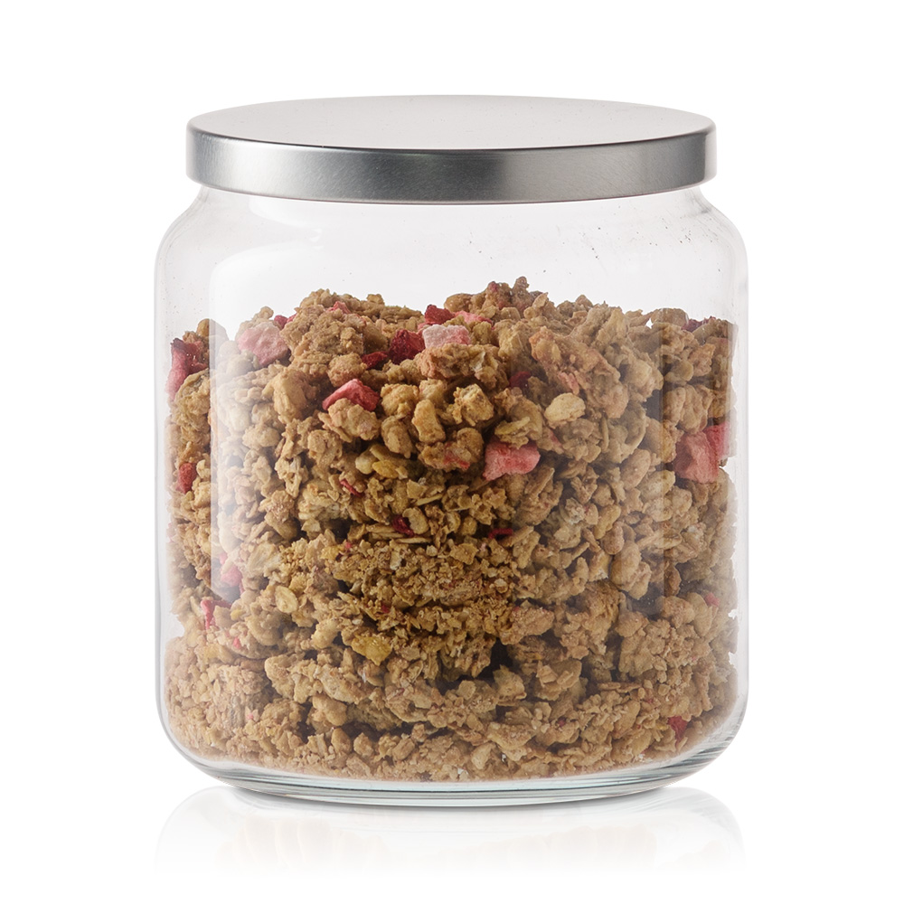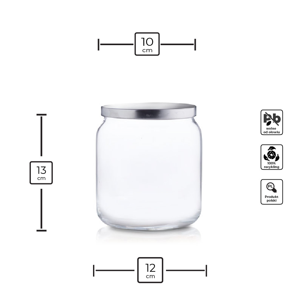 Solidne metalowe wieczko z uszczelką zabezpiecza zawartość przed wilgocią i utratą aromatu, zapewniając dłuższą świeżość produktów.